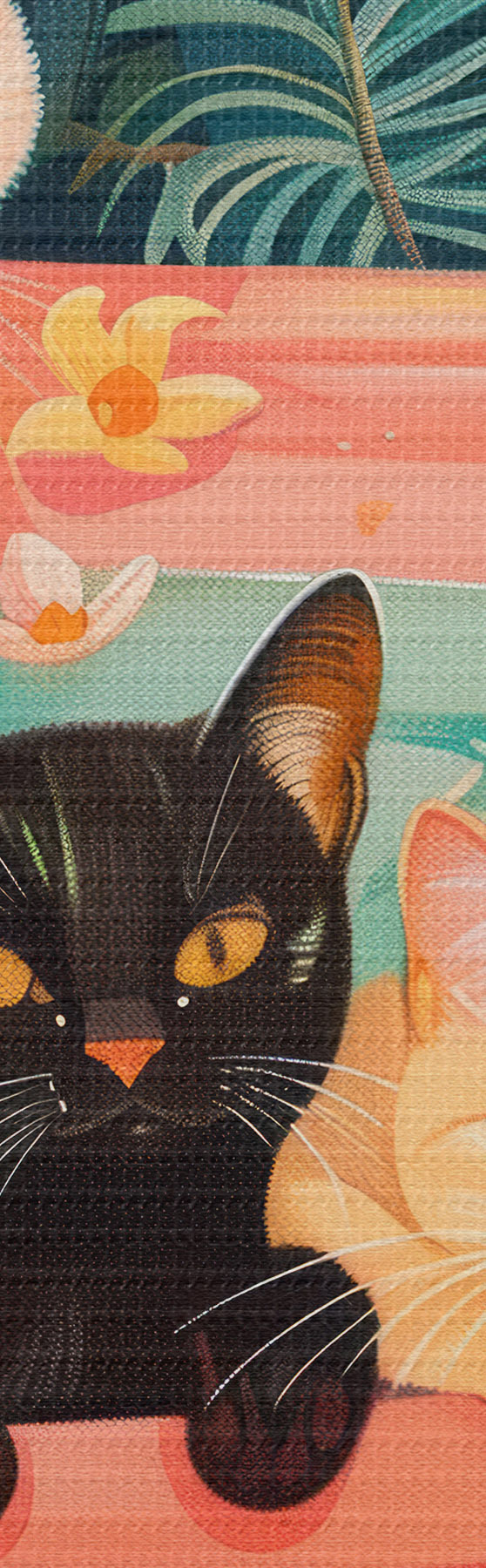Image Chats dans un bain rose aux feuilles vertes, ambiance jungle Nr r39465