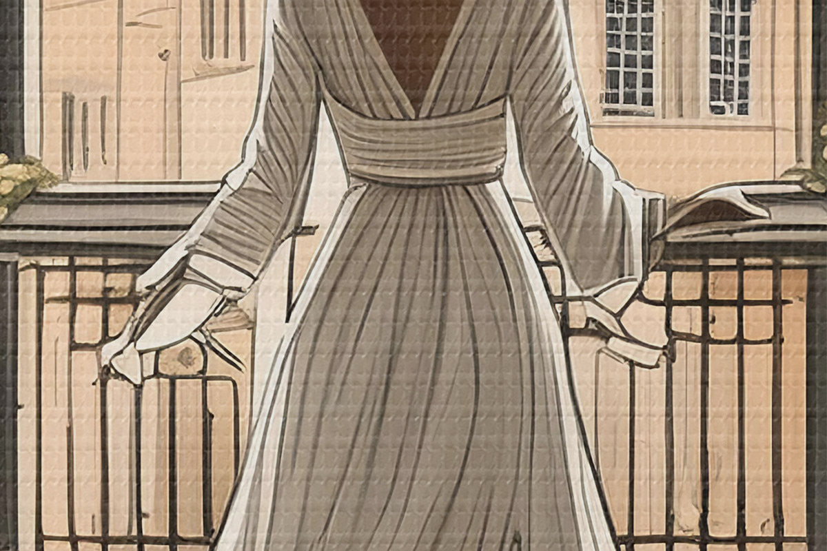 Image silhouette d'une jeune fille vêtue d'une robe blanche près d'une grande fenêtre Nr r39480