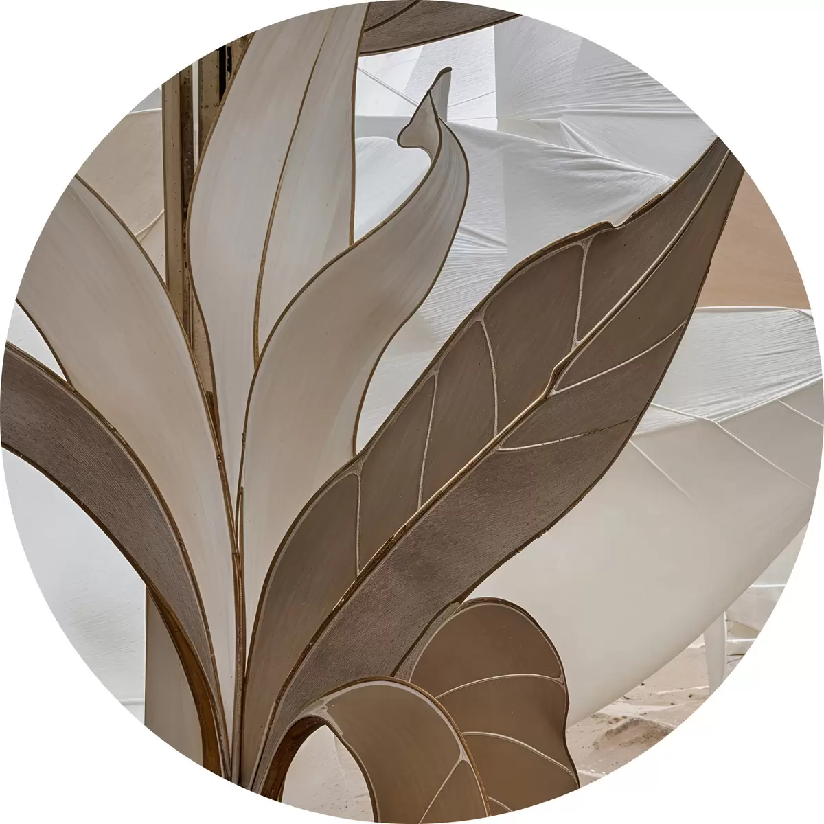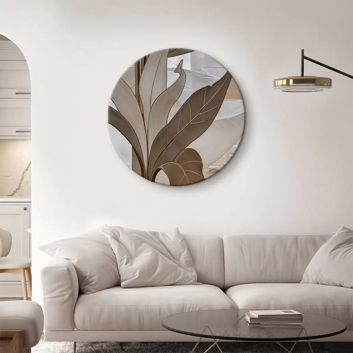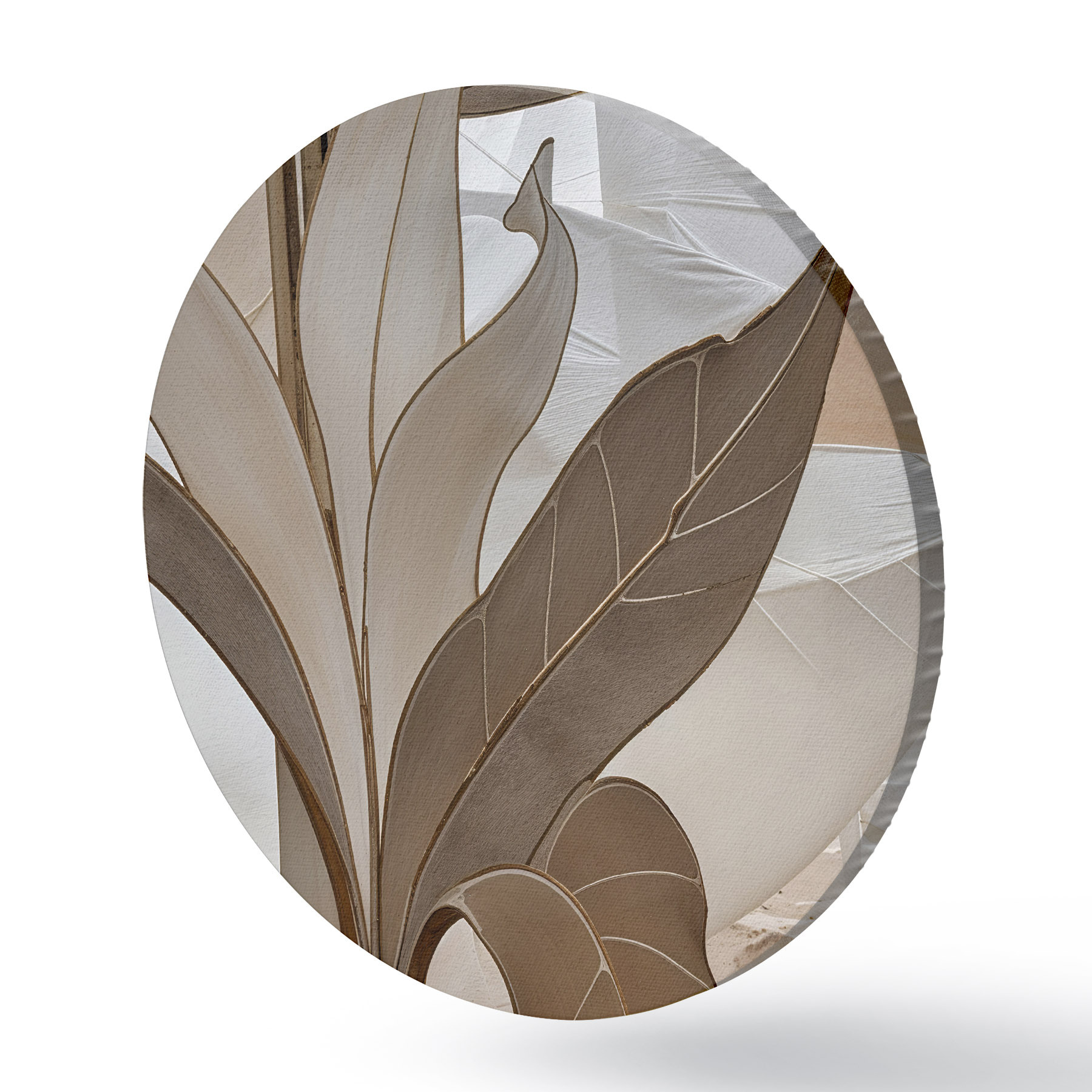 Tableaux ronds Vue rapprochée d'un motif géométrique abstrait avec des formes et des textures qui se chevauchent dans des tons de beige r39498