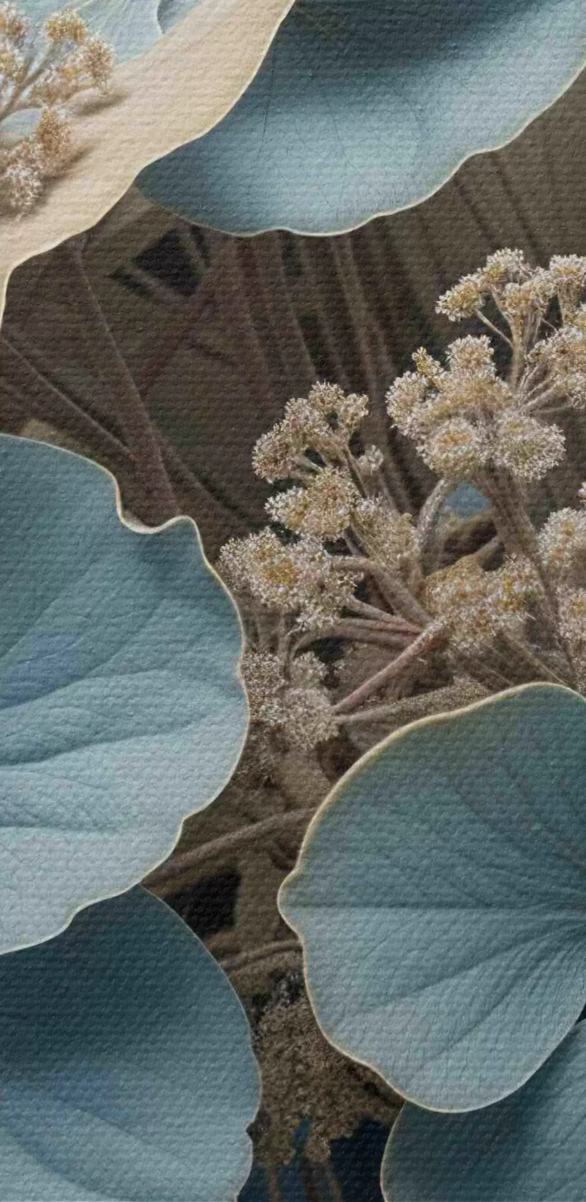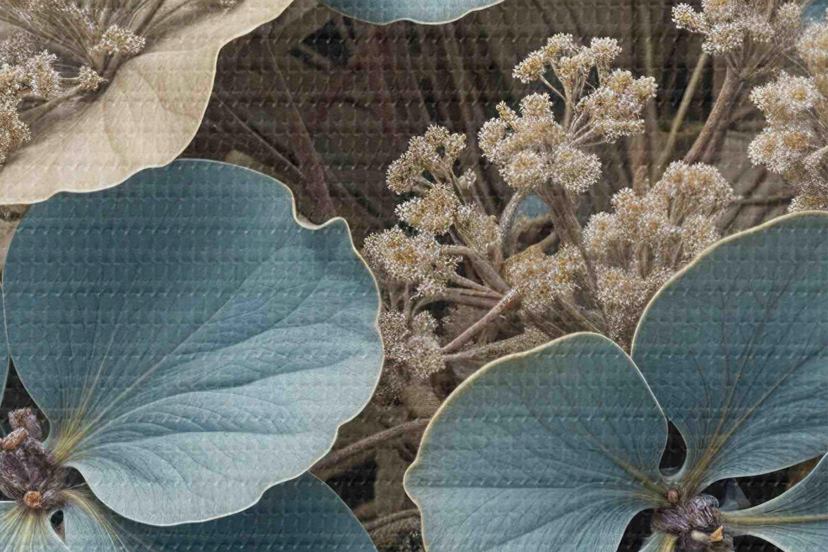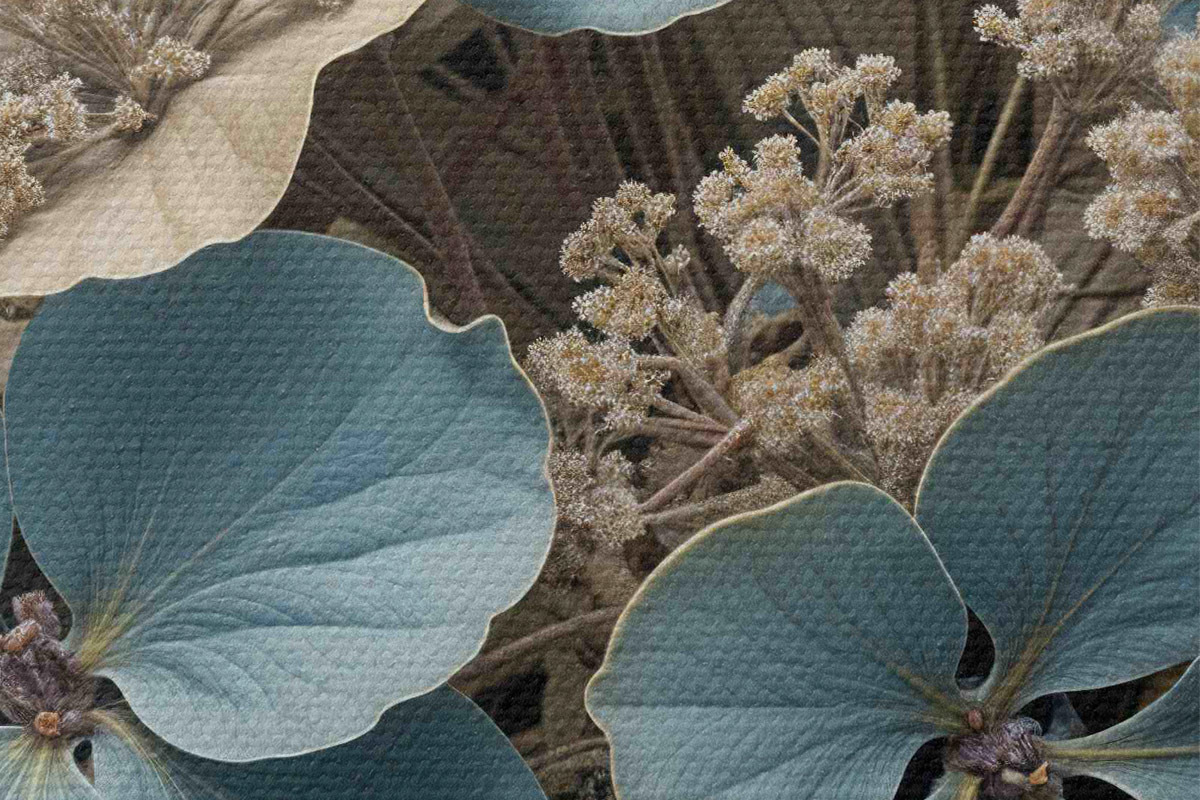 Image Gros plan de fleurs bleues et blanches aux pétales doux et flous sur fond brun Nr r39517