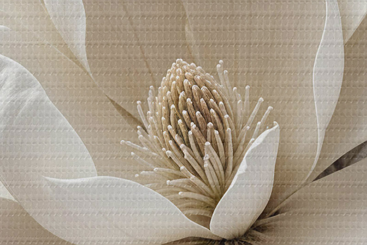 Image Fleur de magnolia blanche aux pétales délicats entourée de feuilles vertes sur fond clair Nr r39527