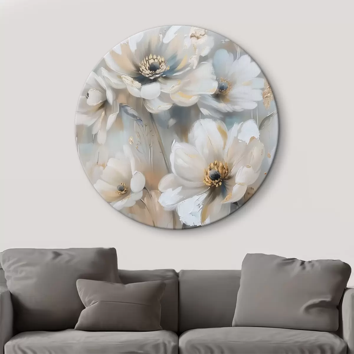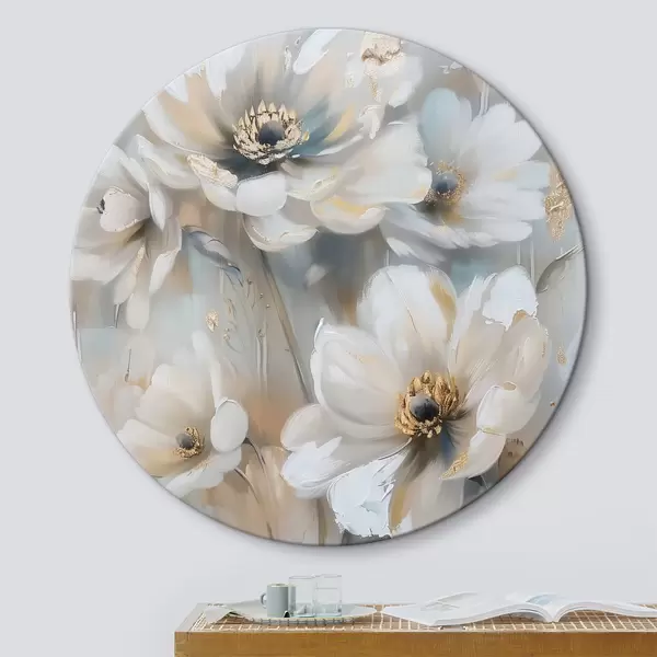 Tableaux ronds fleurs blanches r39544