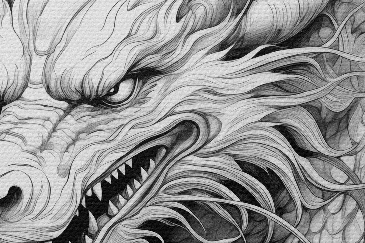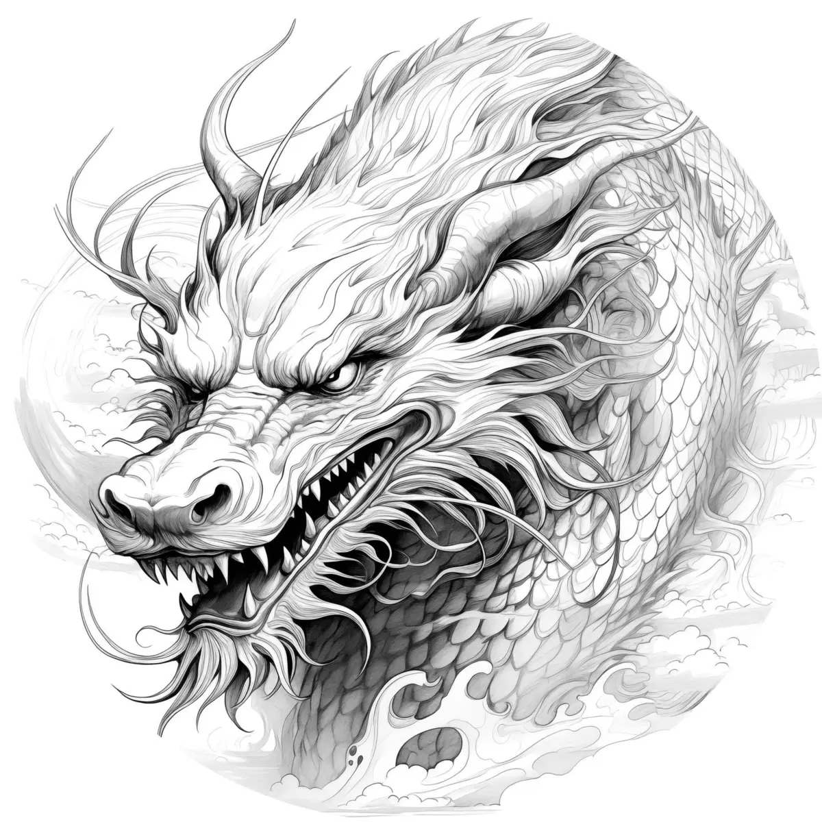 Image Dessin au trait dragon de style chinois monochrome Nr r39563