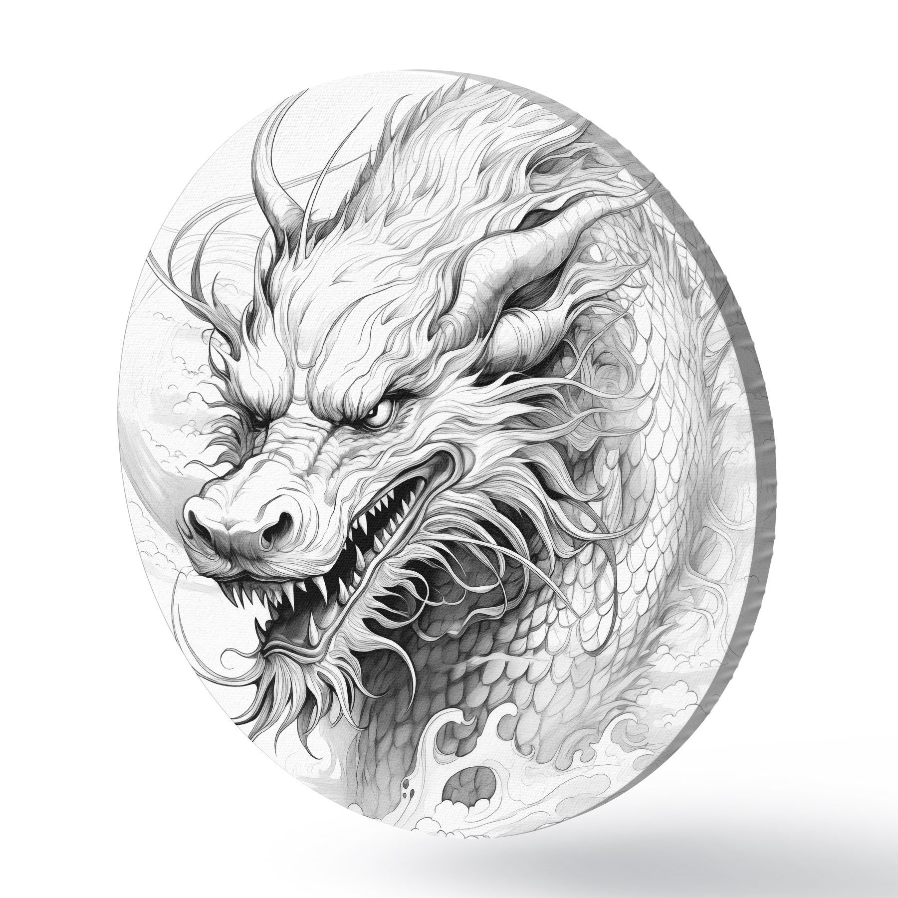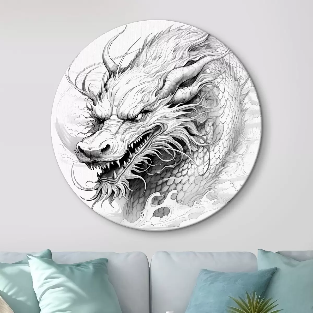 Tableaux ronds Dessin au trait dragon de style chinois monochrome r39563