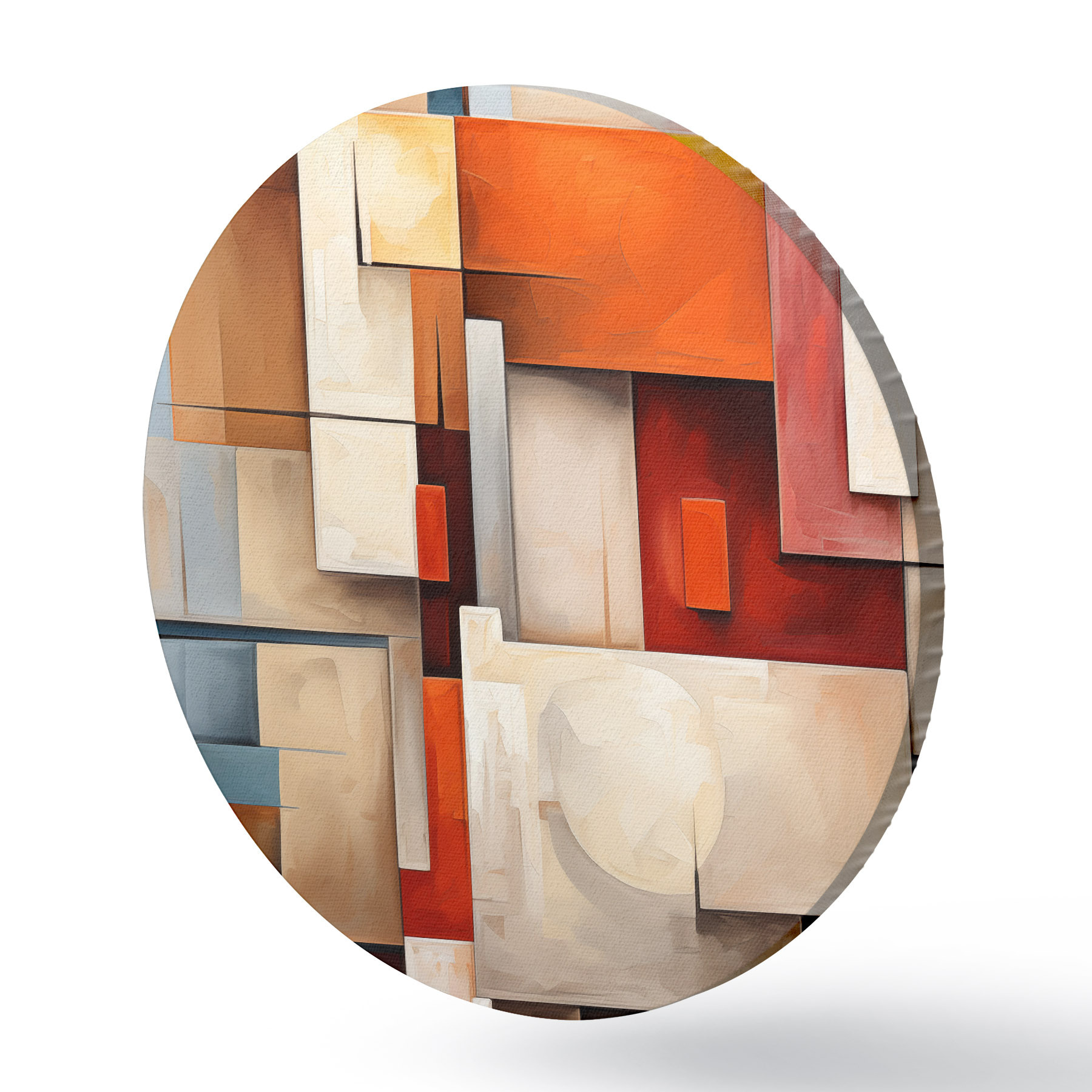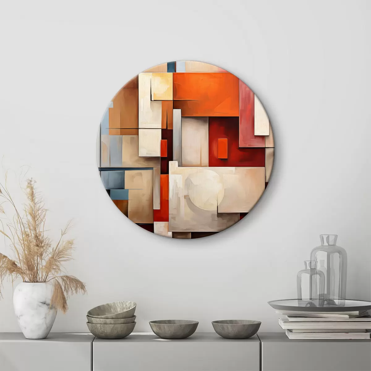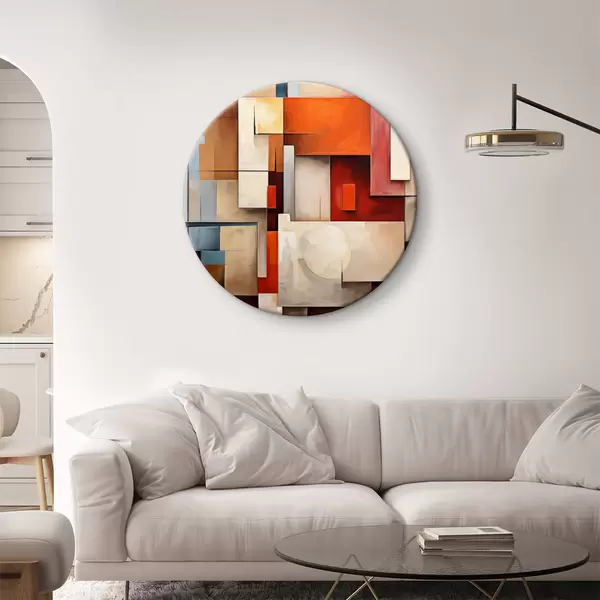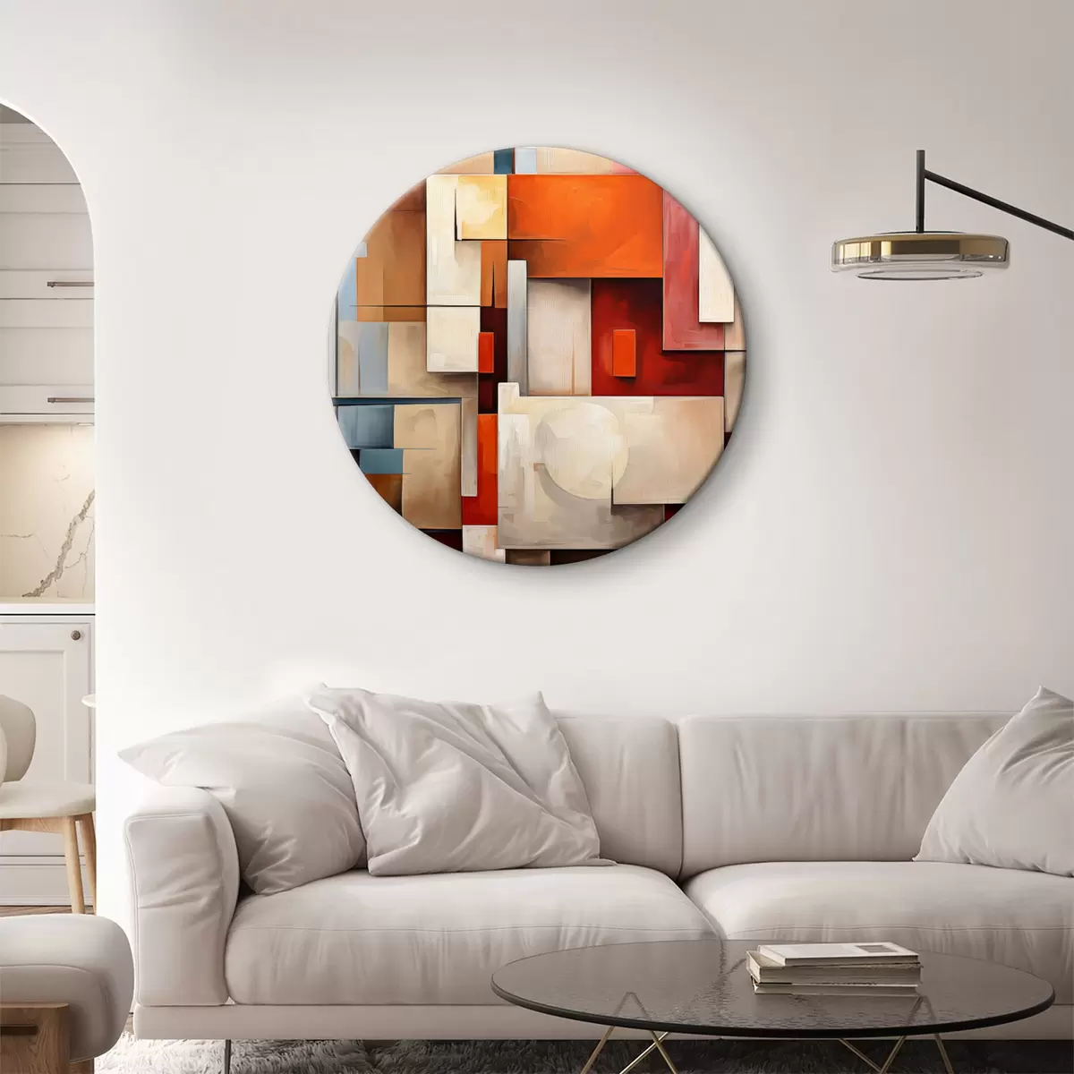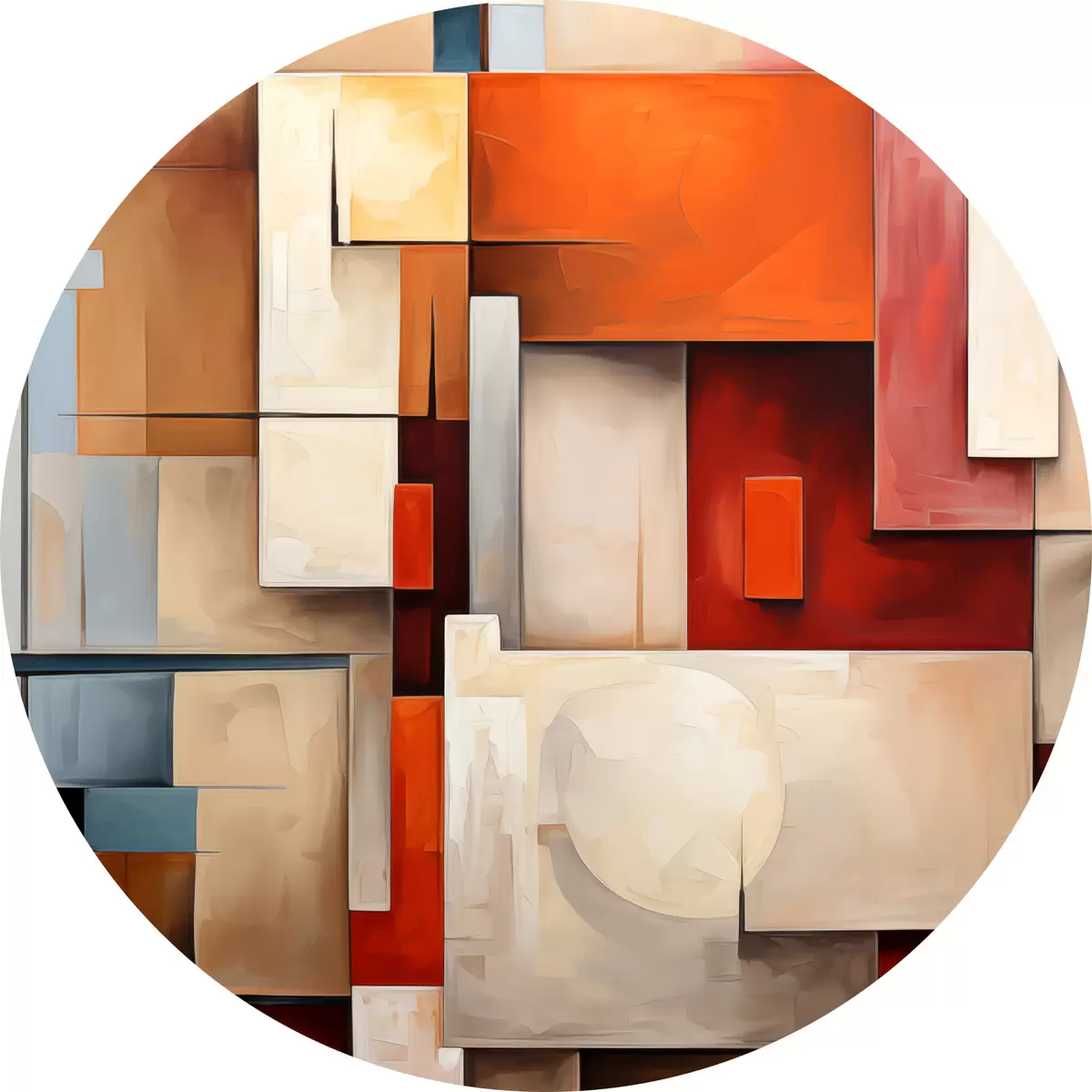 Tableaux ronds Abstraction dans le style cubisme, peinture à l'huile, couleurs rouge, bleu, blanc r39571