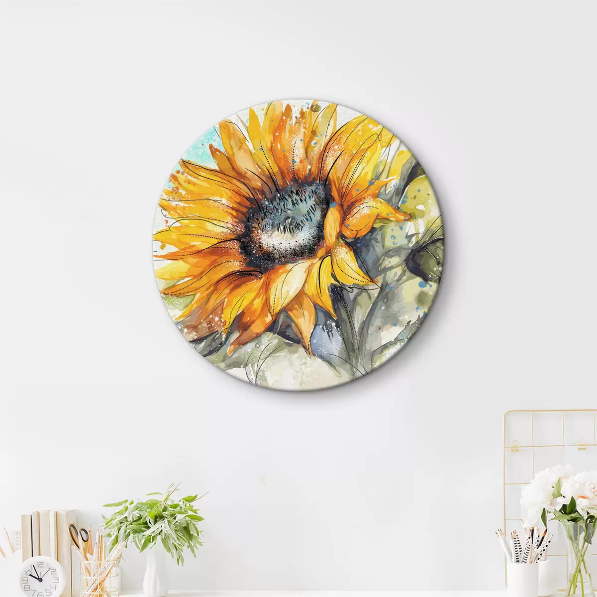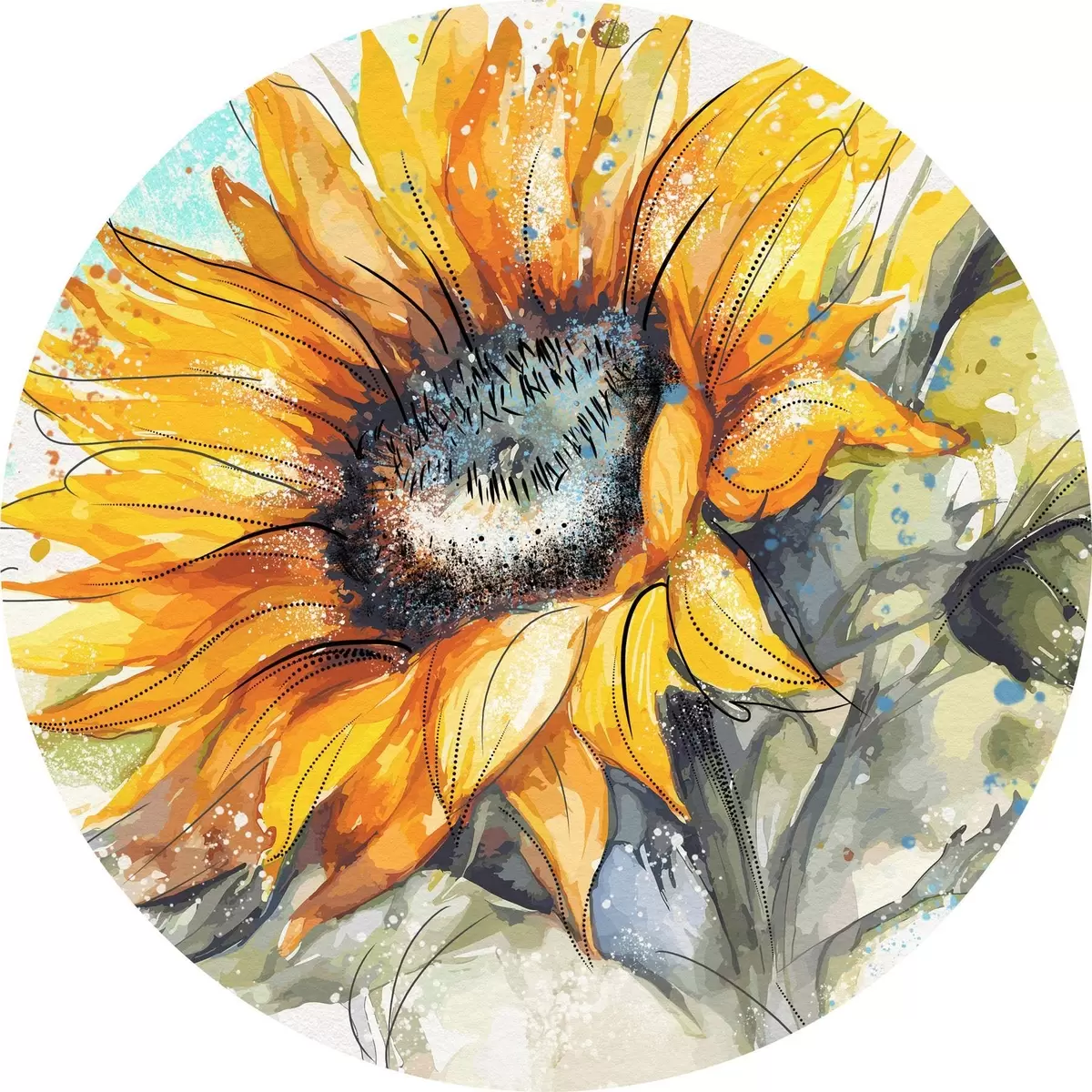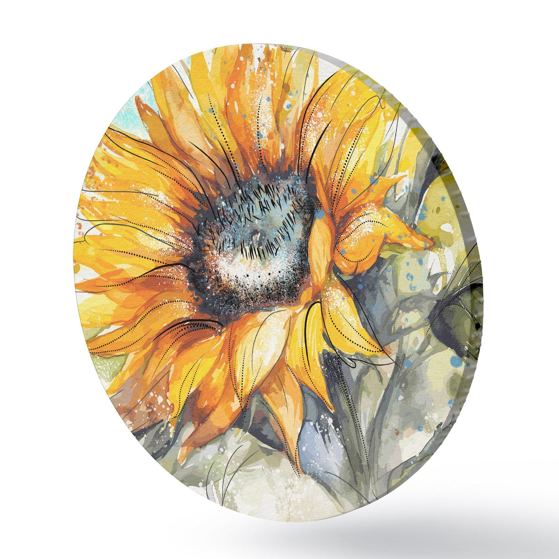 Tableaux ronds Tournesol aquarelle avec éclaboussures de peinture r39583