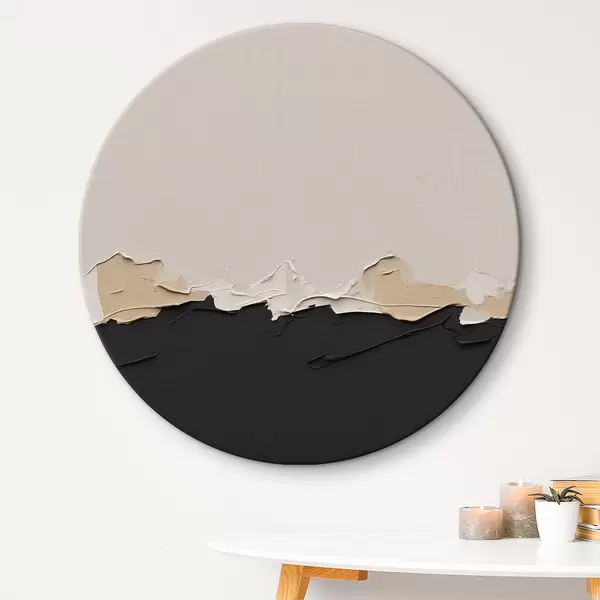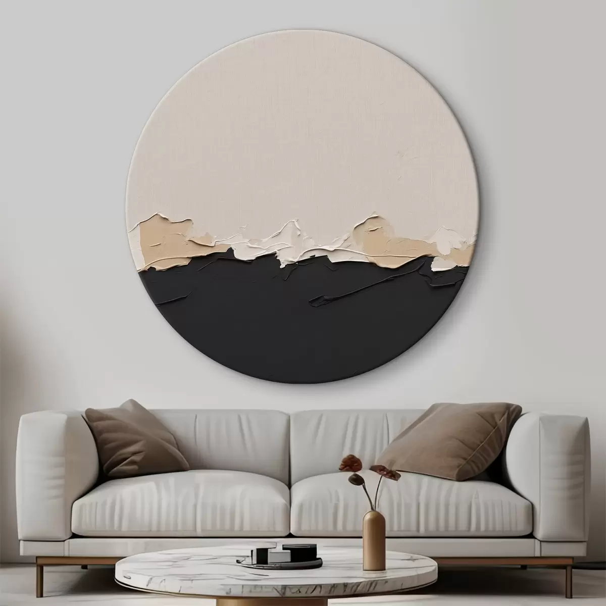 Tableaux ronds Peinture abstraite aux couleurs blanc et noir r39609