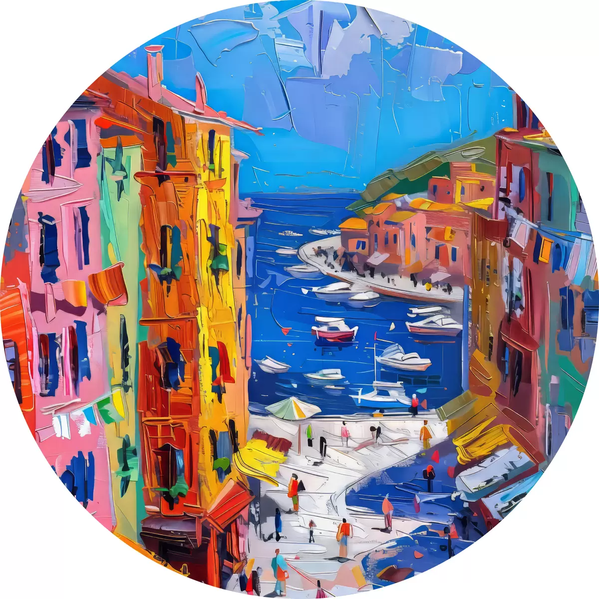 Tableaux ronds Village français au crépuscule : une impression à la manière de Van Gogh r39627