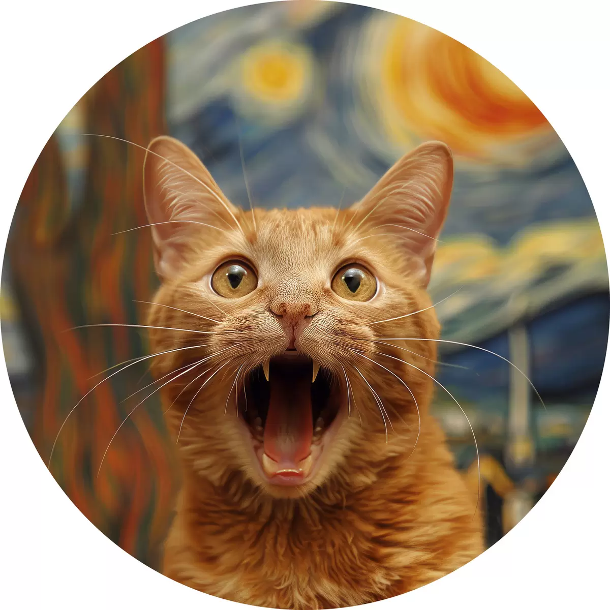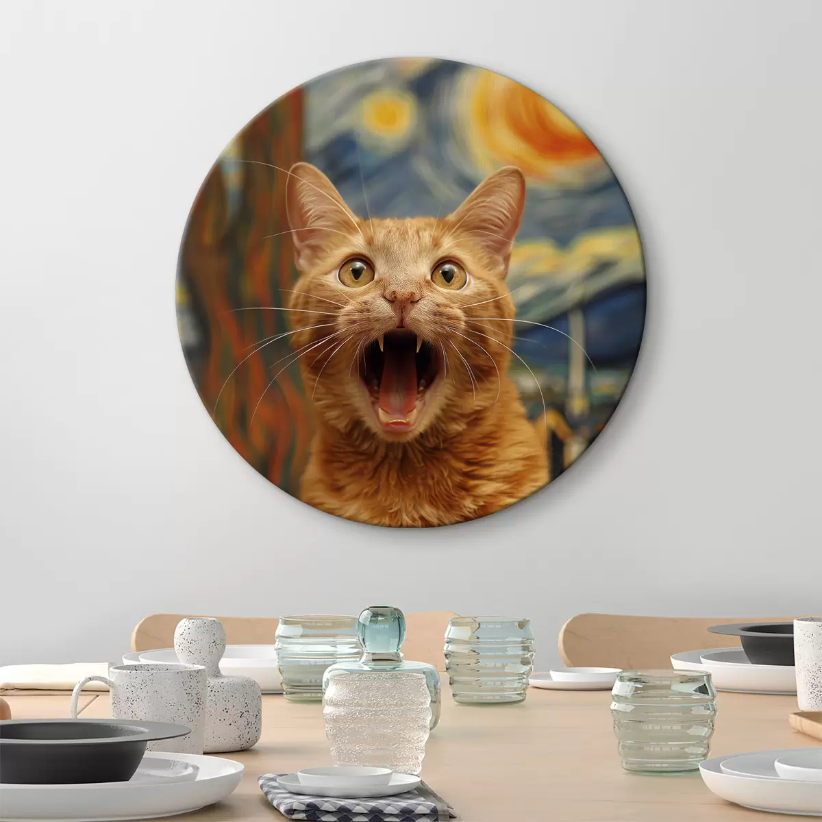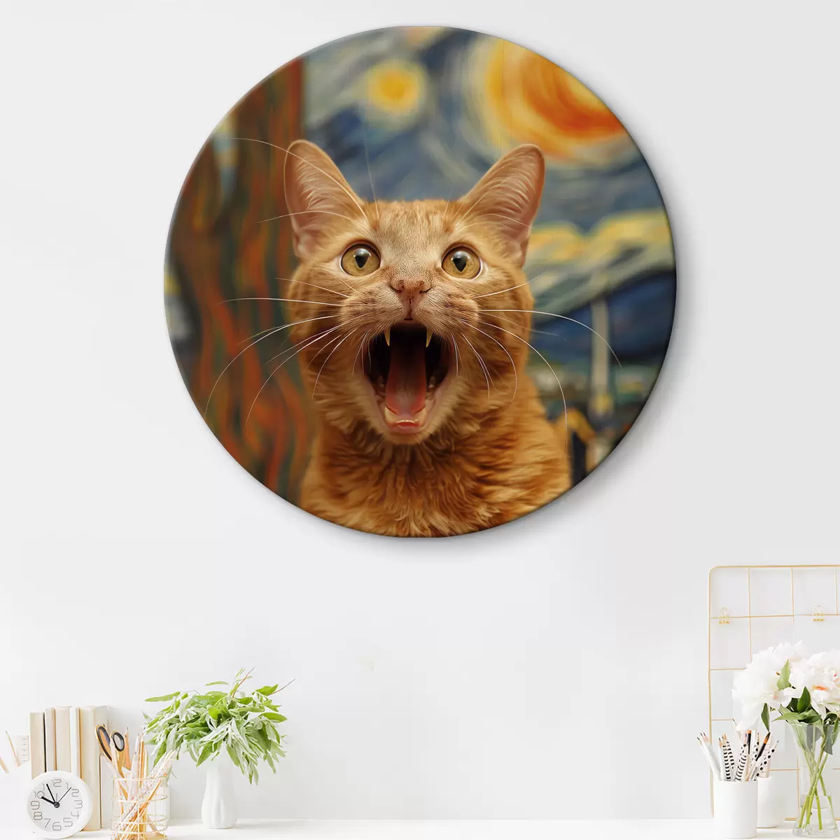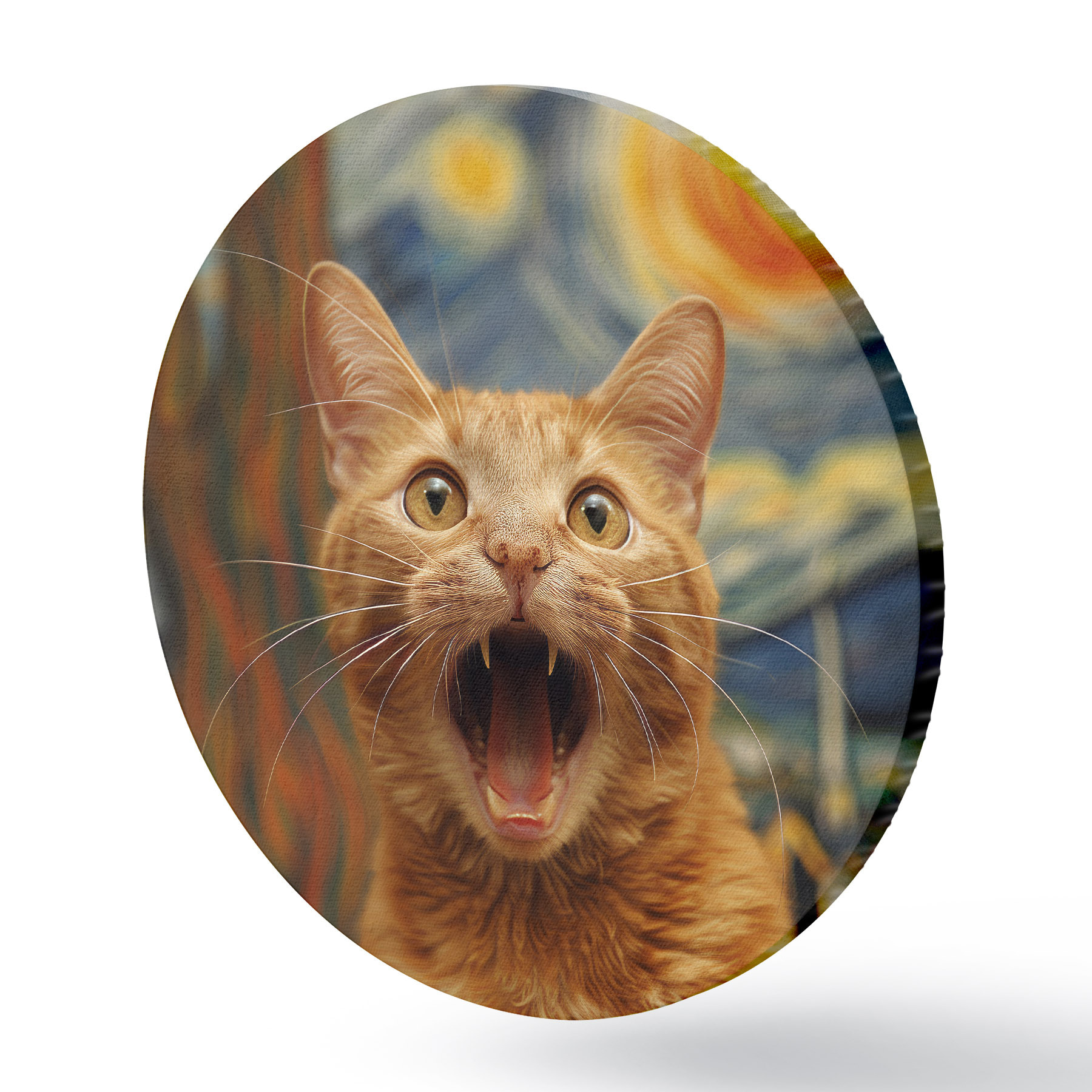 Tableaux ronds Peinture de style Van Gogh représentant "Le Cri" avec un chat r39724