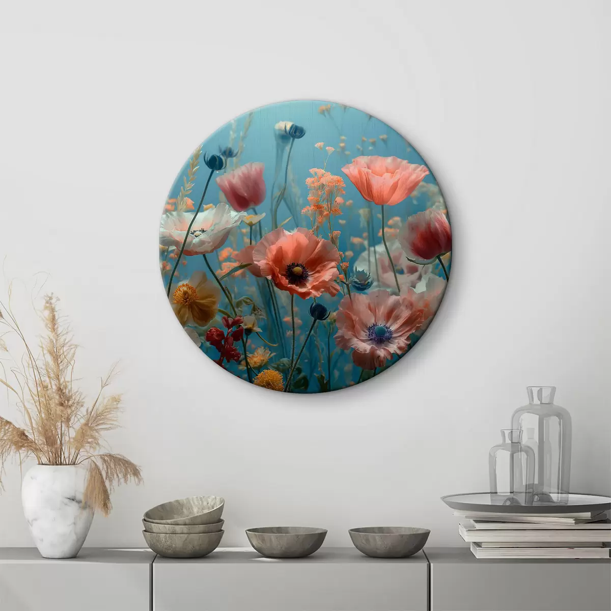 Tableaux ronds Fleurs sauvages, dont des coquelicots, des tulipes et bien plus encore r39752