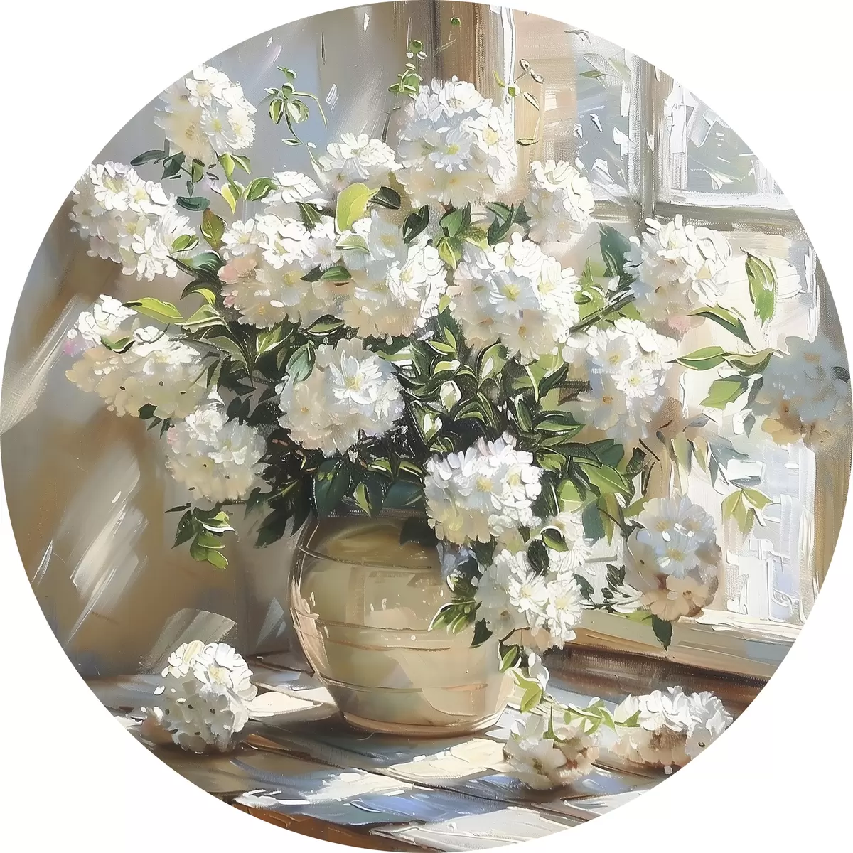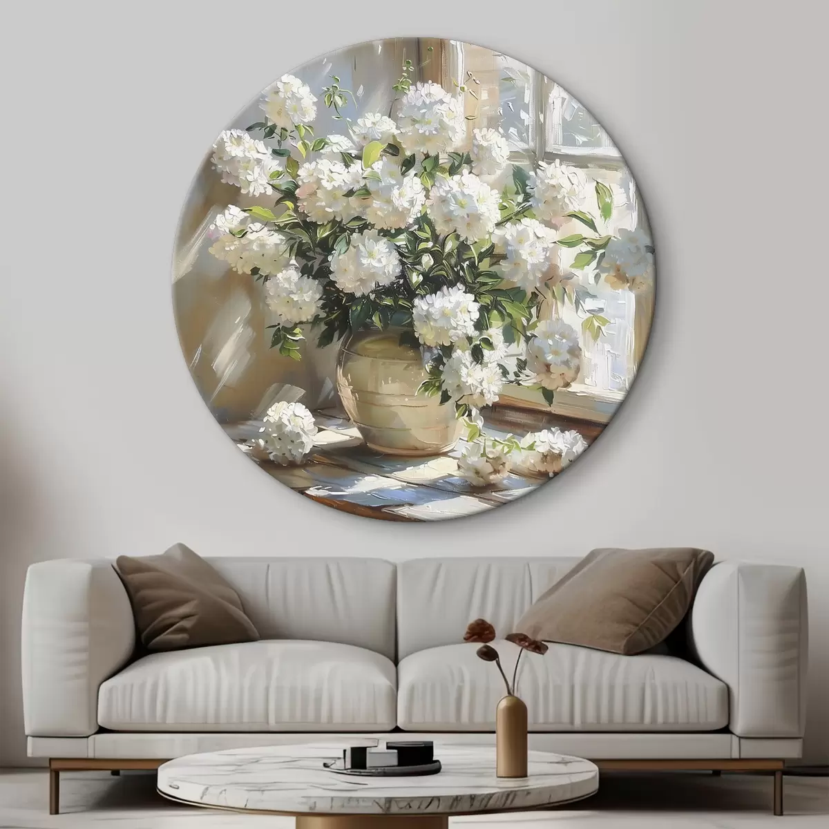 Tableaux ronds Un beau bouquet est posé sur le rebord de la fenêtre r39779