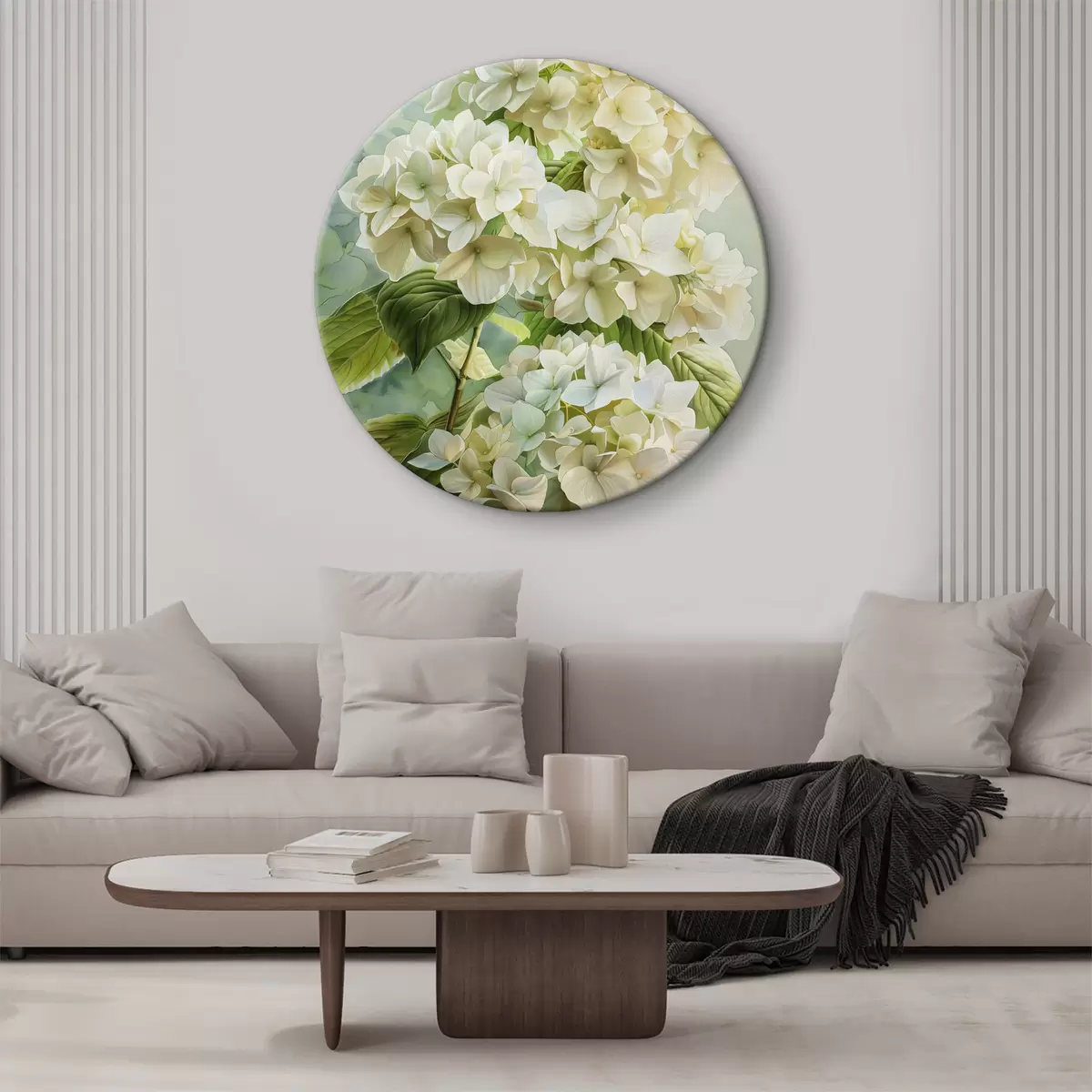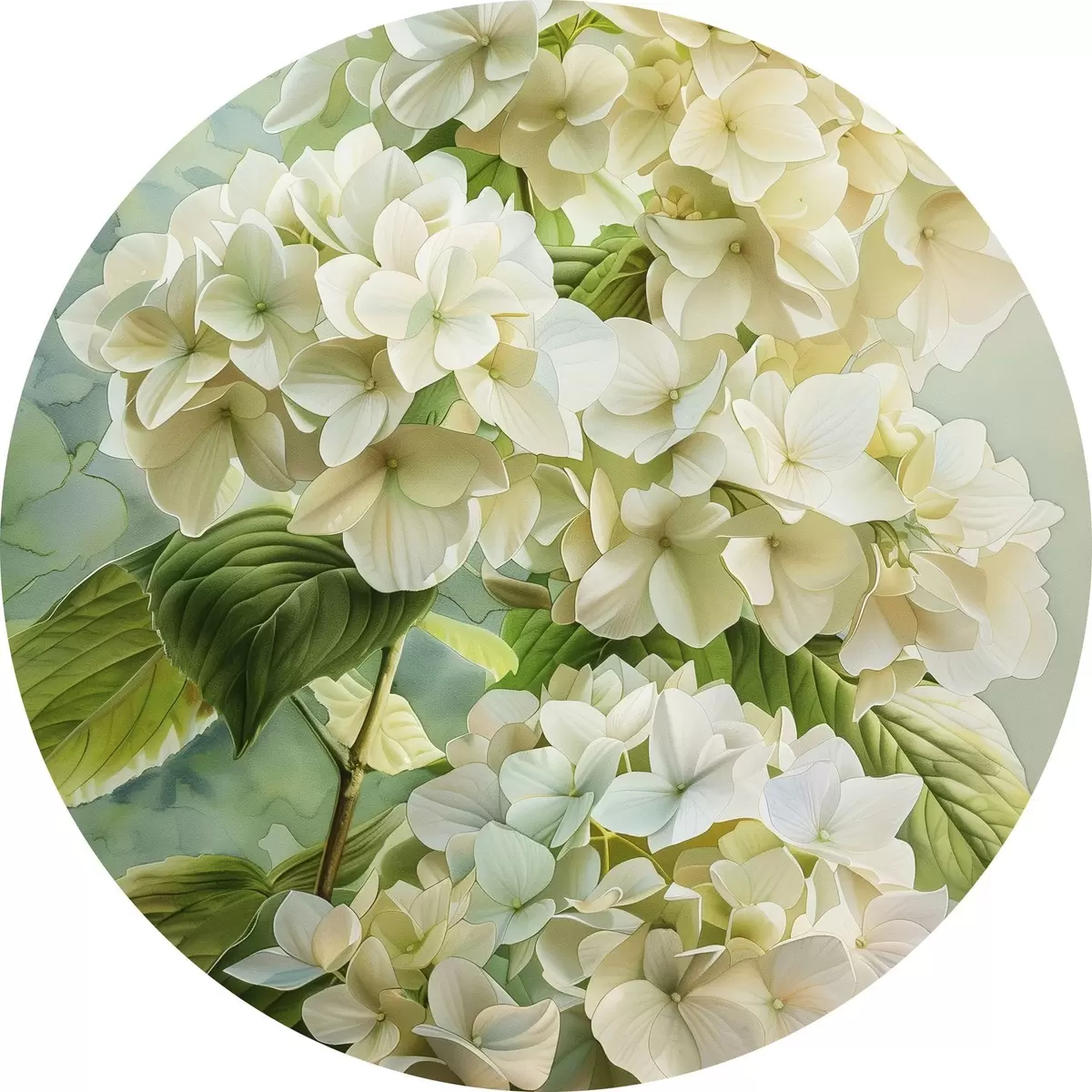 Tableaux ronds Fleur d'hortensia, floral, couleurs naturelles douces, dessin aquarelle r39782