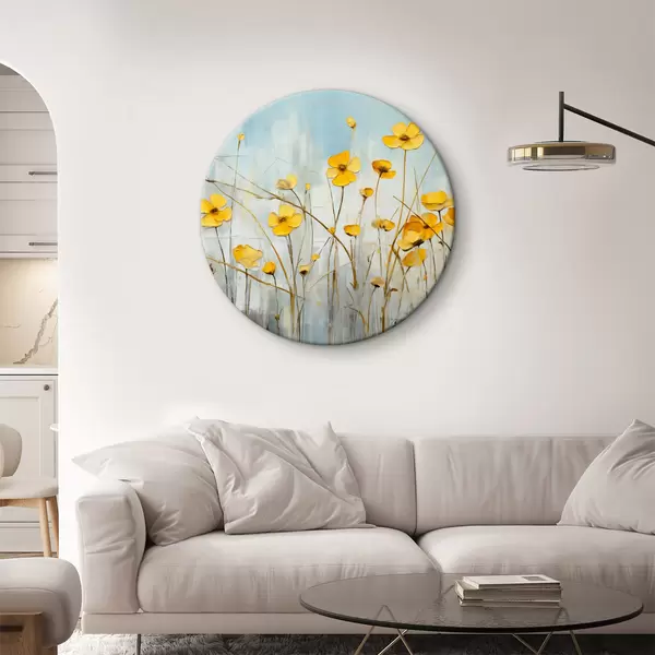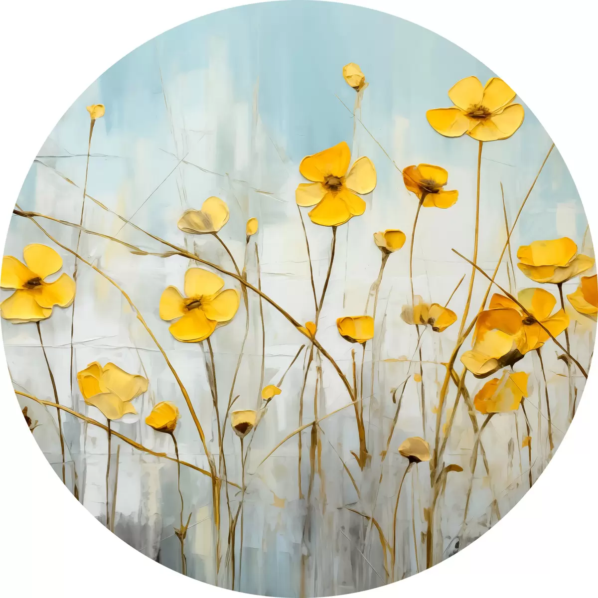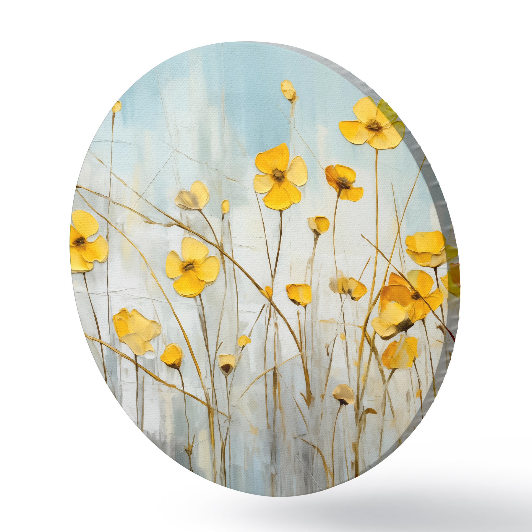 Tableaux ronds Petites fleurs jaunes sur une longue peinture à l’huile de tige r39823