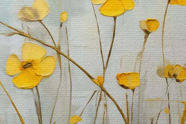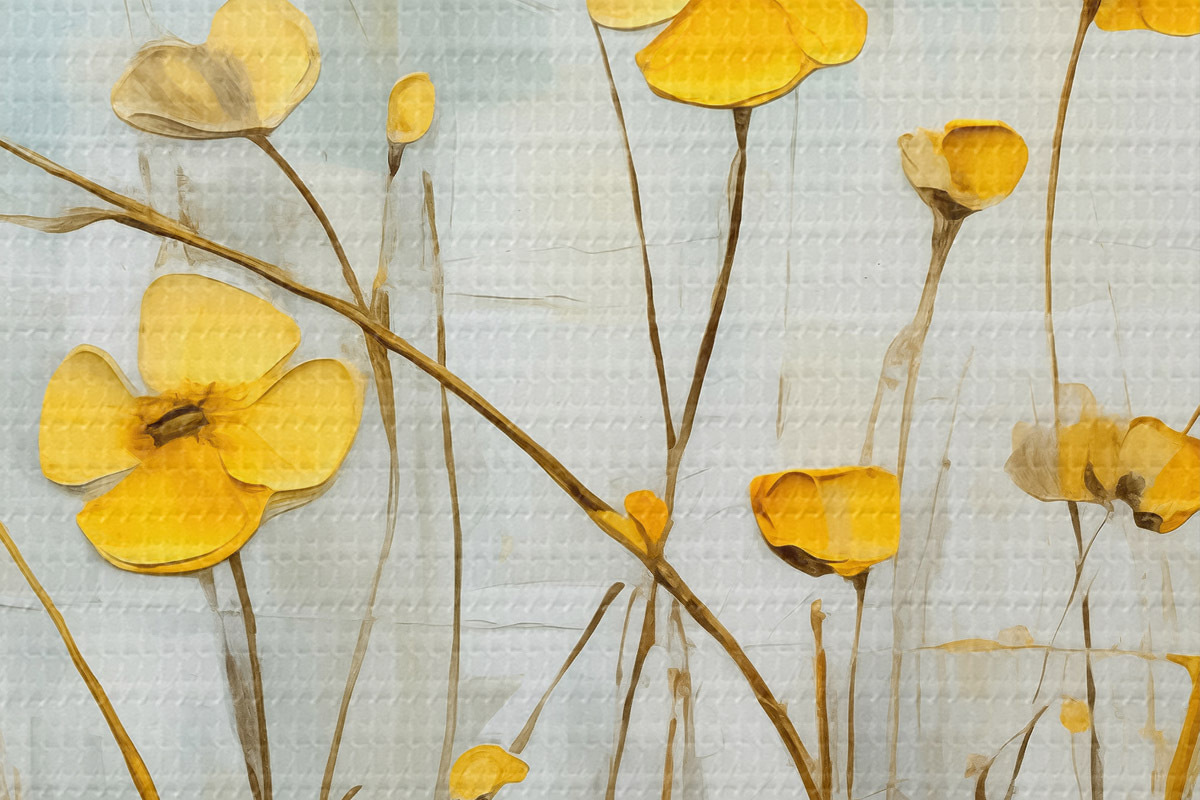 Image Petites fleurs jaunes sur une longue peinture à l’huile de tige Nr r39823