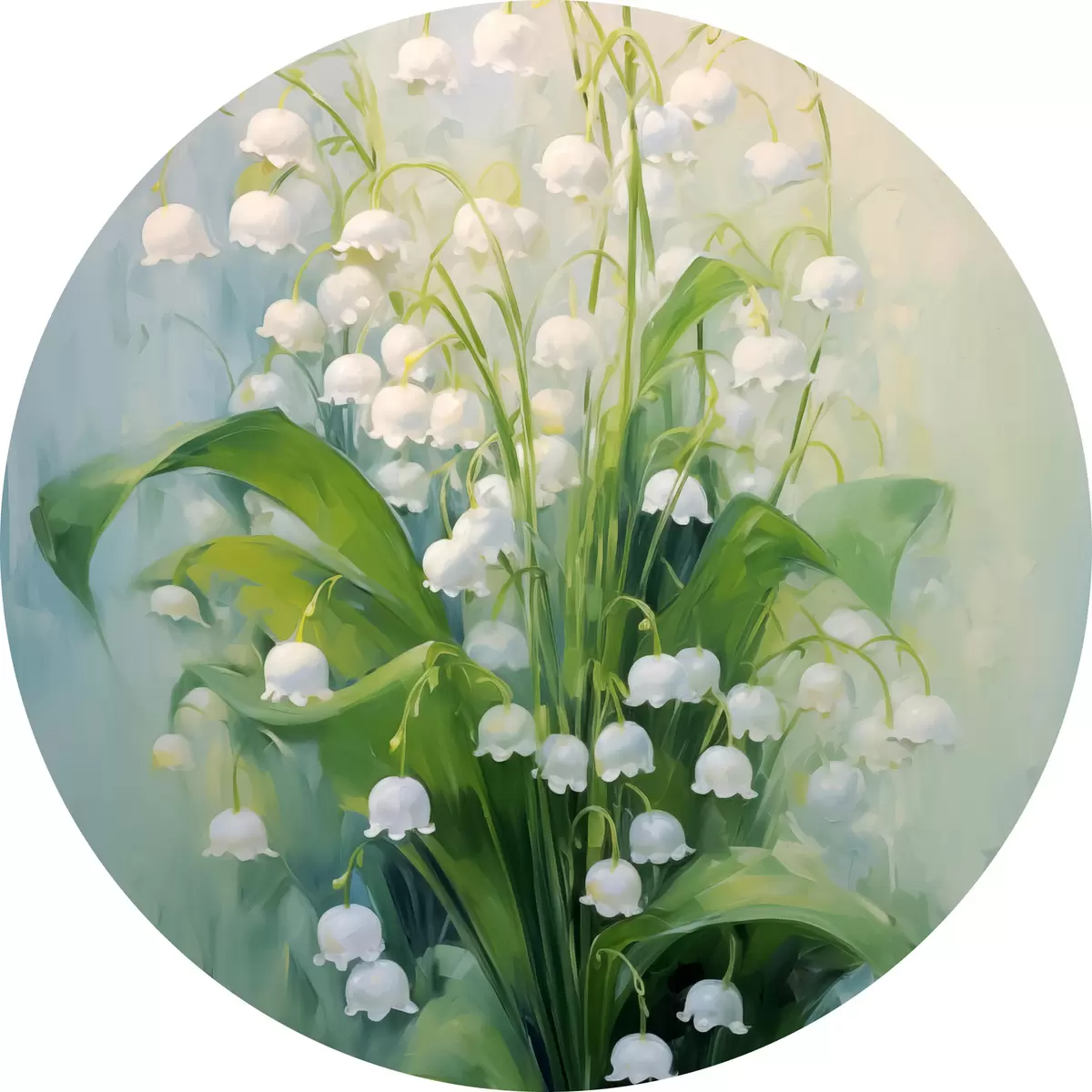 Tableaux ronds Peinture à l'huile de muguet blanc r39827
