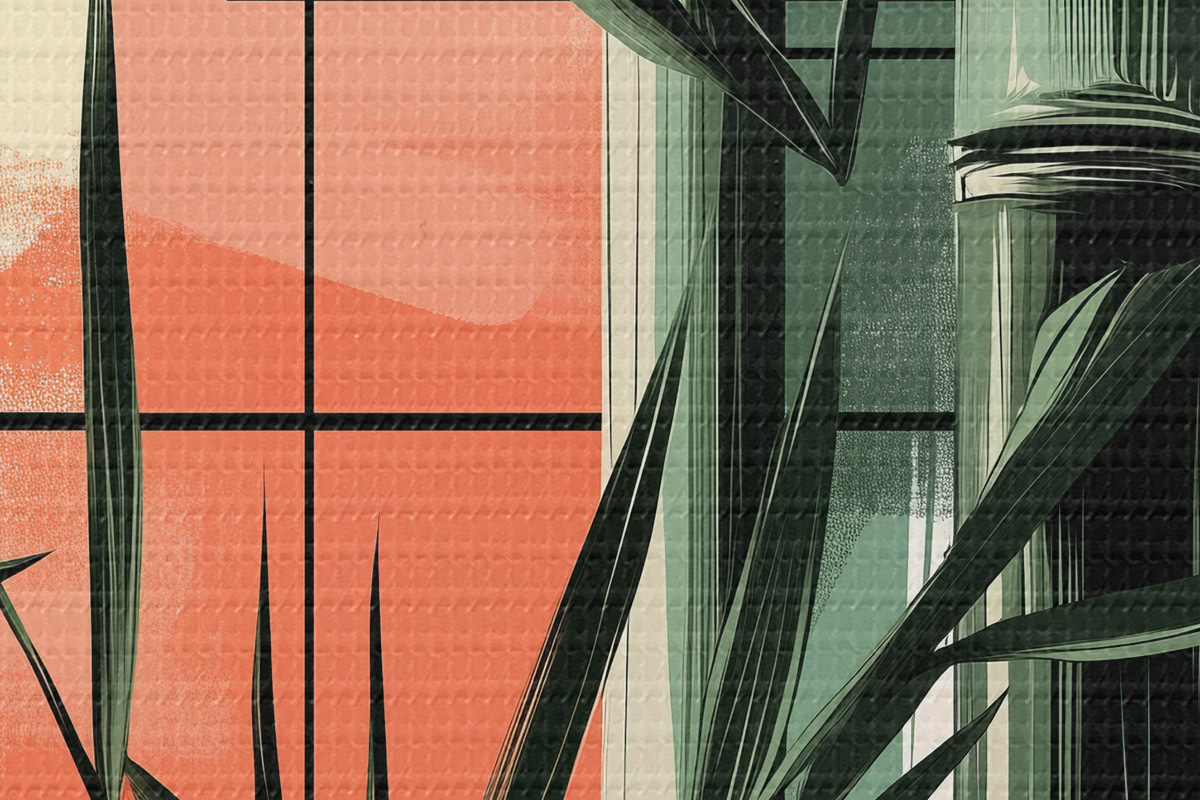 Tableaux ronds Résumé avec bambou et soleil r39898