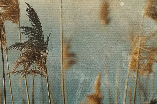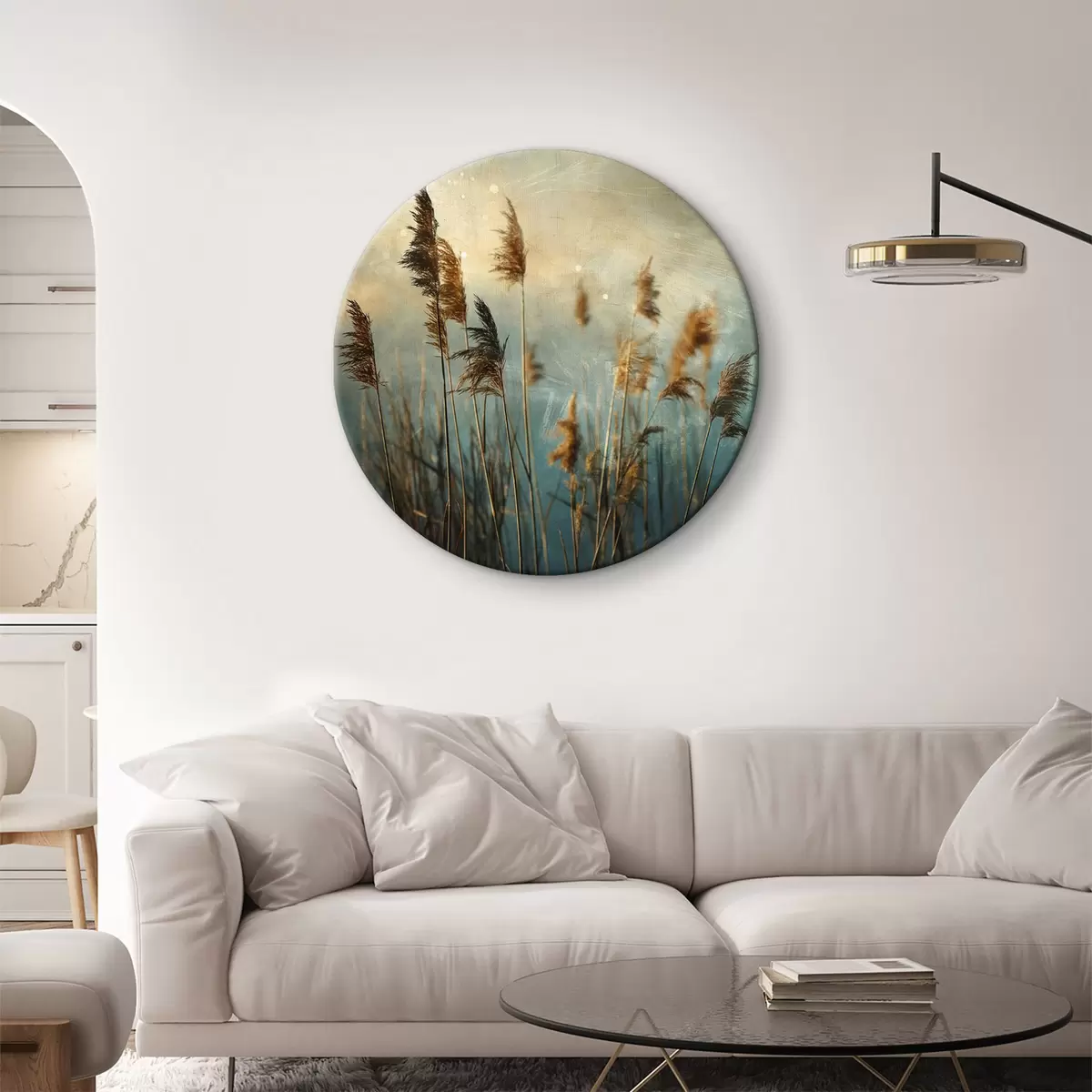 Tableaux ronds Roseaux, couleur bleue, antique r39946