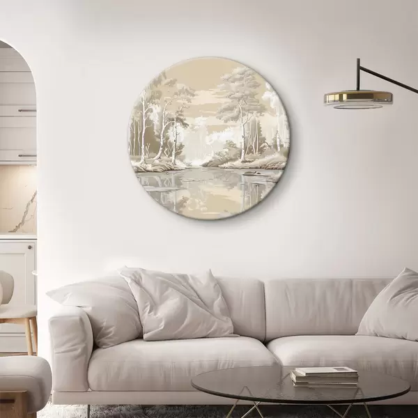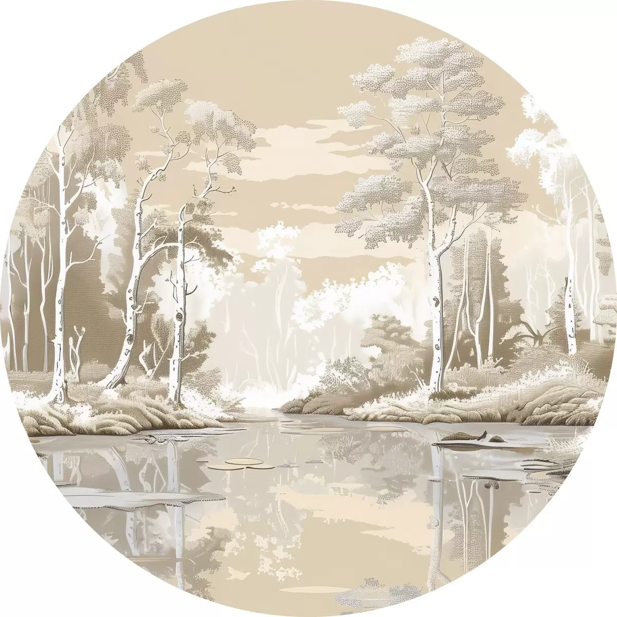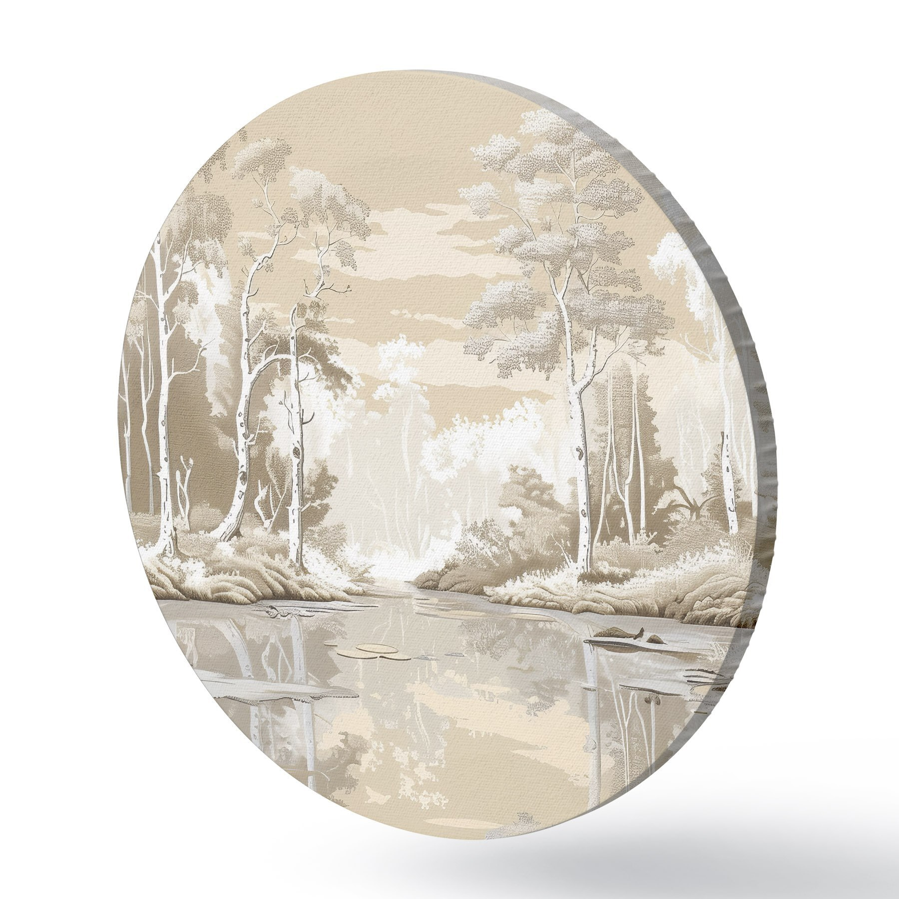 Tableaux ronds Magnifique paysage forestier, couleurs pastel douces, beige et blanc r39978
