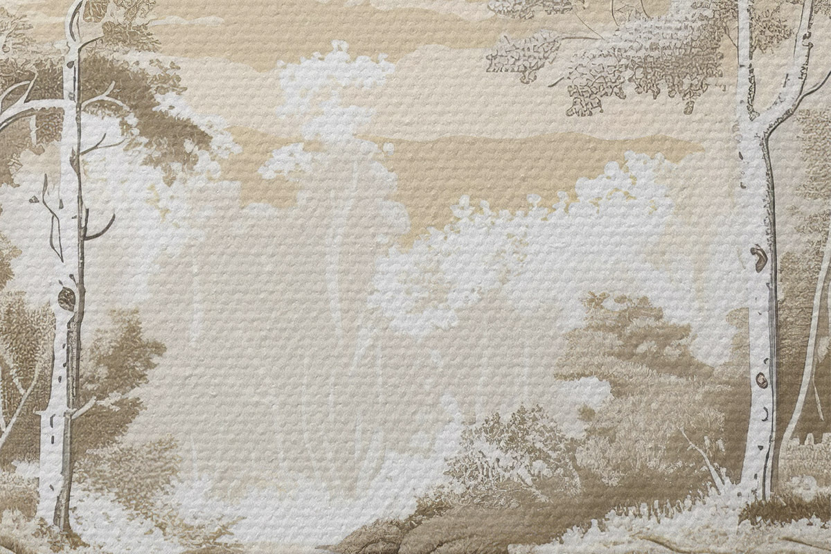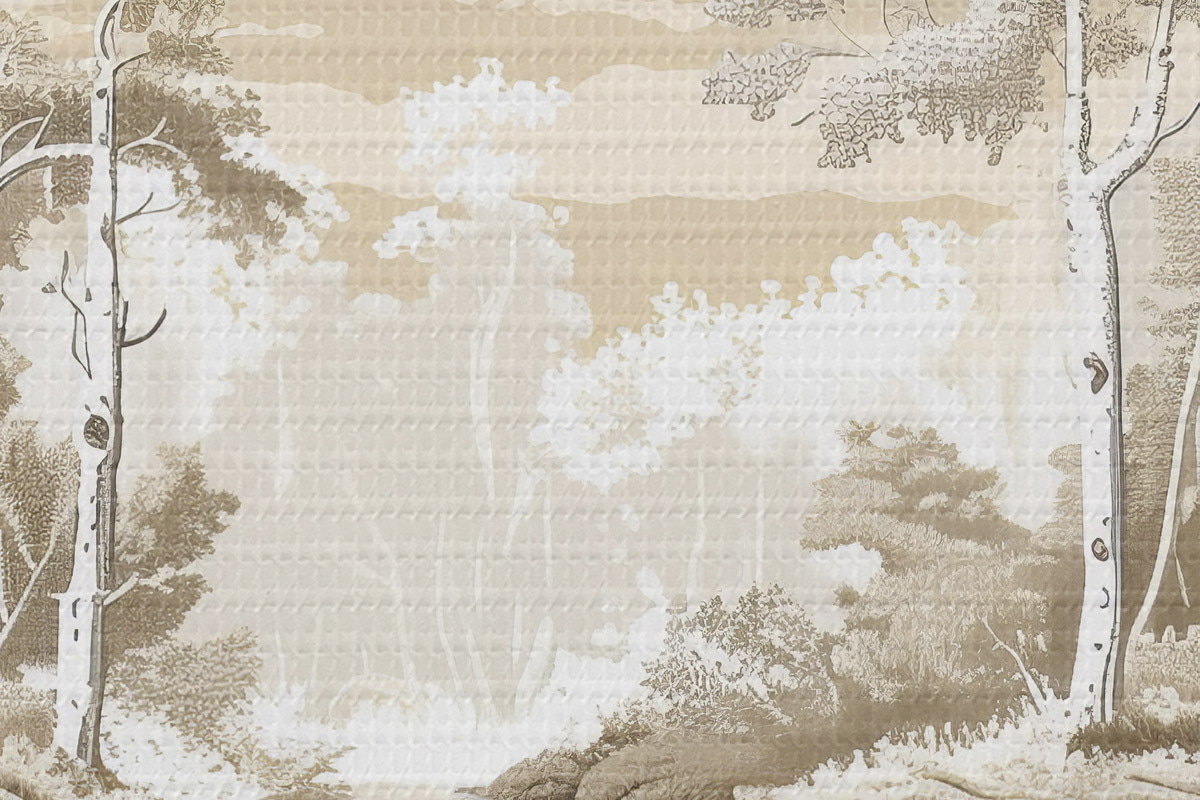 Image Magnifique paysage forestier, couleurs pastel douces, beige et blanc Nr r39978