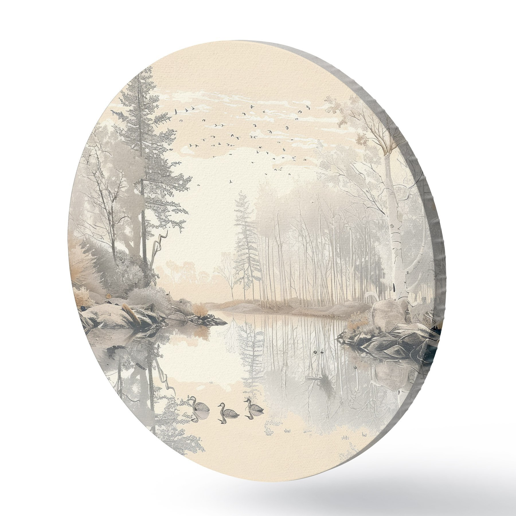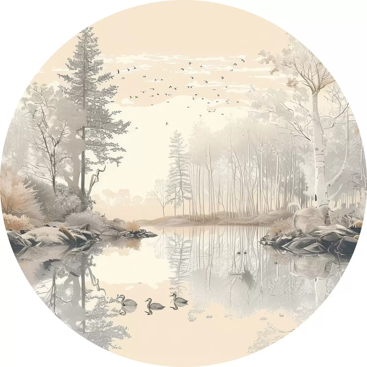 Tableaux ronds Magnifique paysage naturel, étang et arbres, faune, couleurs pastel douces r39980
