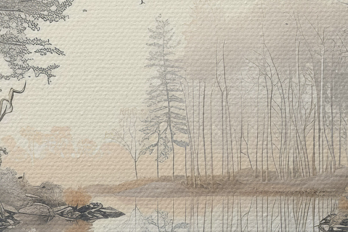 Image Magnifique paysage naturel, étang et arbres, faune, couleurs pastel douces Nr r39980