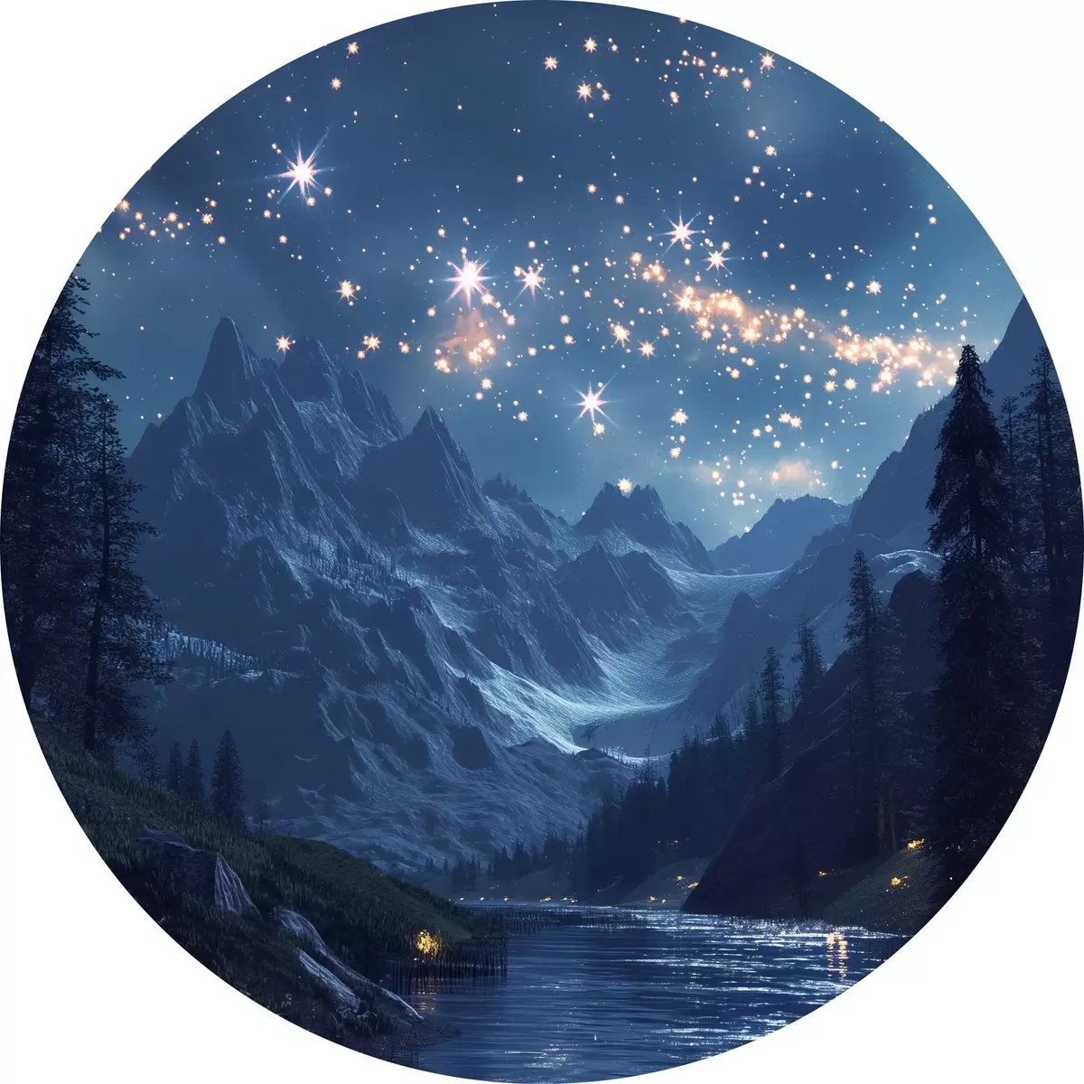 Tableaux ronds Velaris, montagnes, étoiles r40010