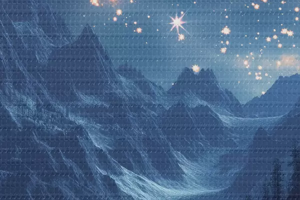 Tableaux ronds Velaris, montagnes, étoiles r40010