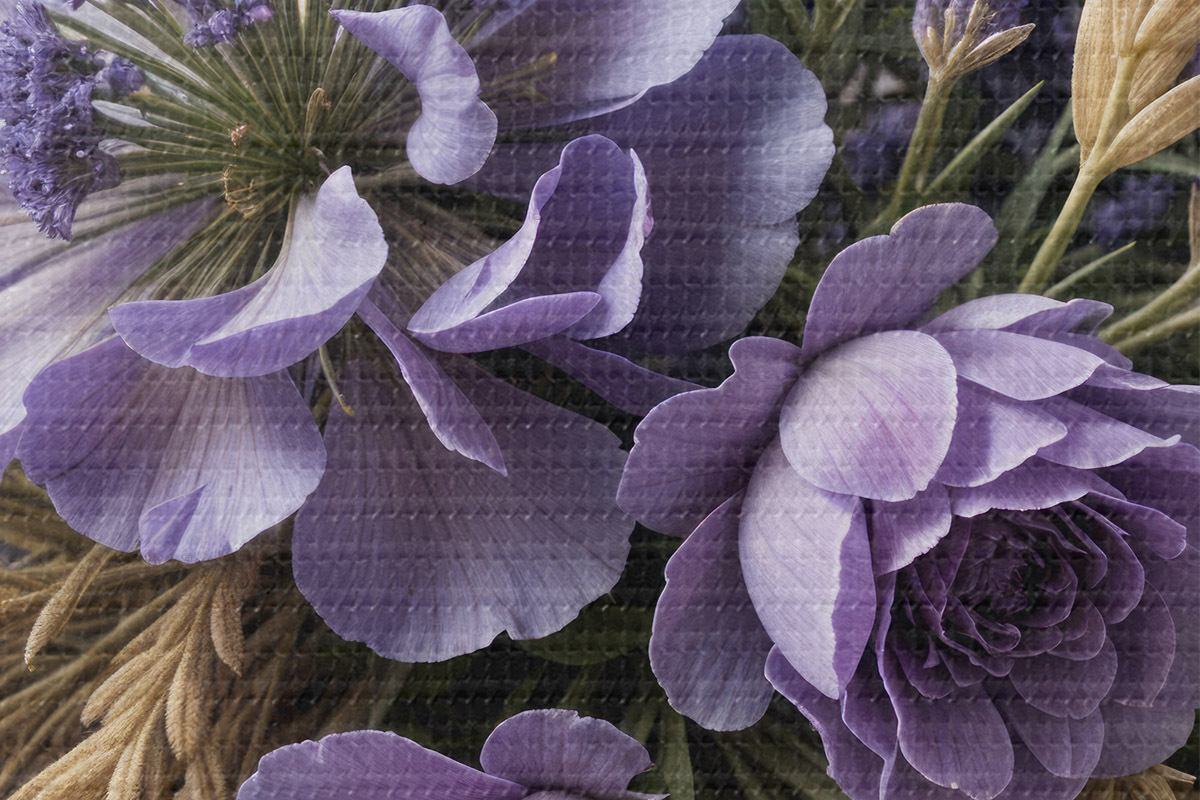 Image Un bouquet de fleurs violettes, dont des pivoines et de la lavande, avec des tiges de blé sur un fond clair Nr r40030