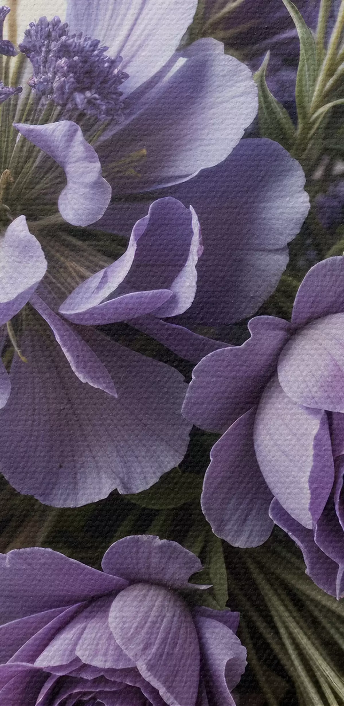 Trois types de matériaux peuvent être commandés : Economic Canvas - matériau dense et durable pour l'impression numérique, identique à la toile de peintre, surface imperméable, reproduction réaliste des détails, matériau à grain moyen. Premium Canvas - la texture ressemble à celle d'une toile de peintre (petits fils entrelacés). Reproduction douce et détaillée de l'image sur une surface mate. Eco-Premium - tissu 100 % coton de haute qualité. Grâce aux fibres naturelles de coton, le matériau est durable et résistant à l'usure. Excellente reproduction des couleurs et des détails.