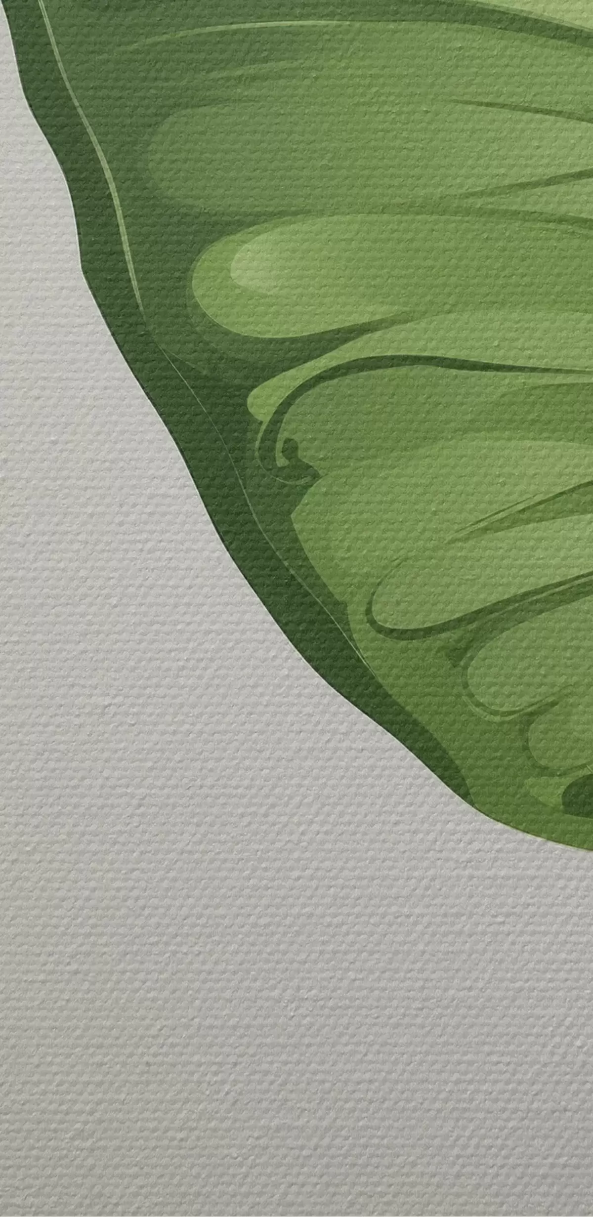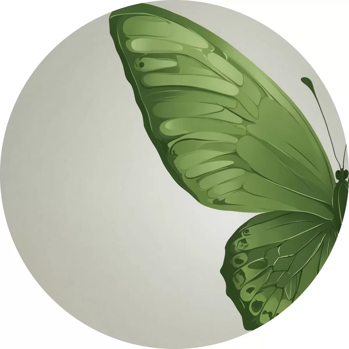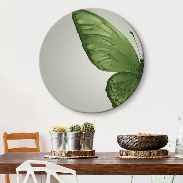 Tableaux ronds Aile gauche d'un papillon vert sur fond blanc r40062