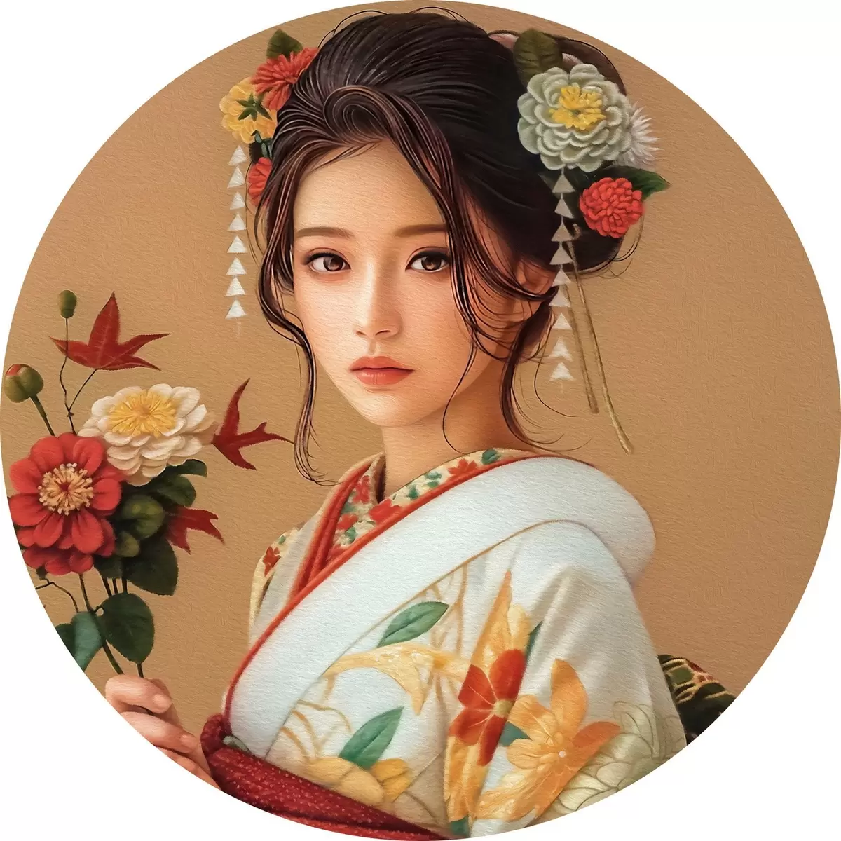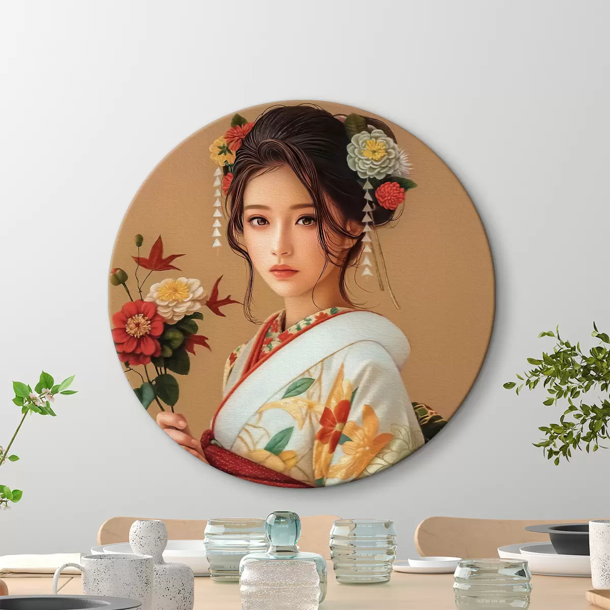 Tableaux ronds Femme japonaise dans un beau kimono r40108