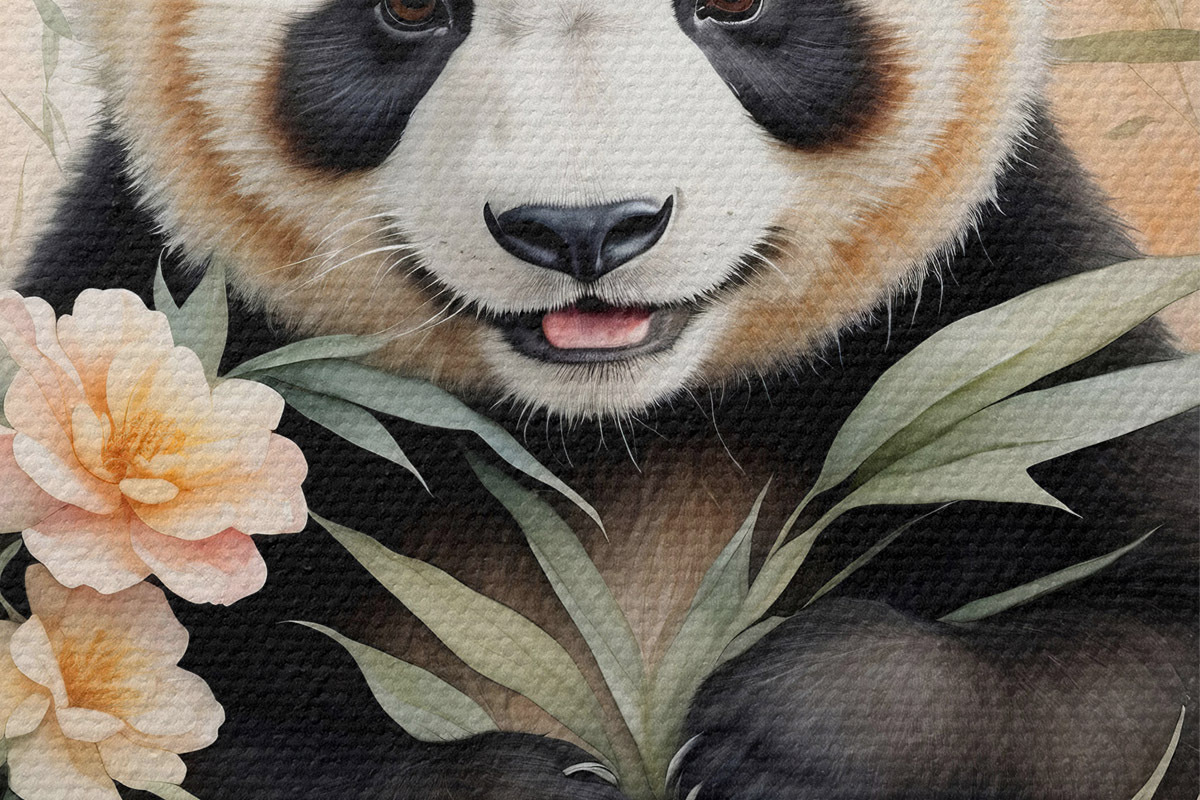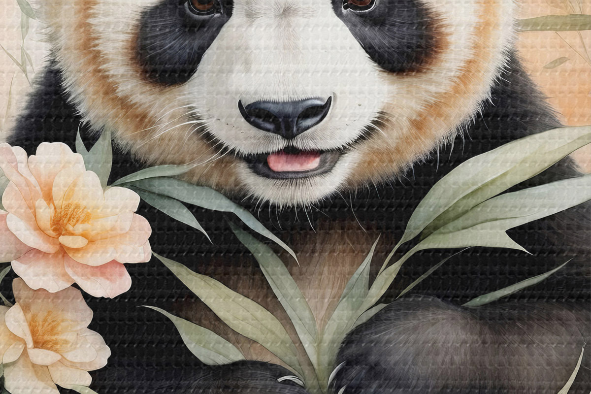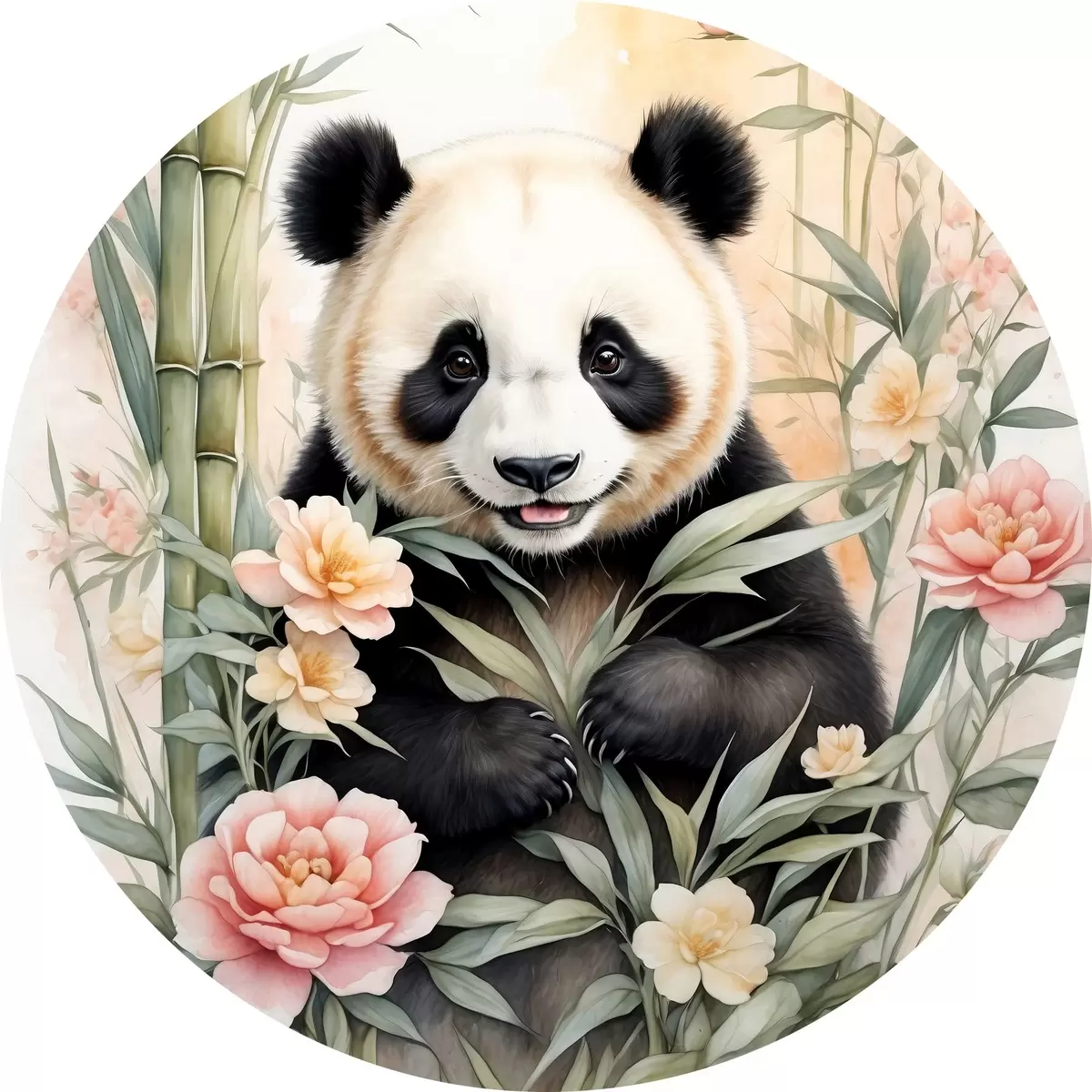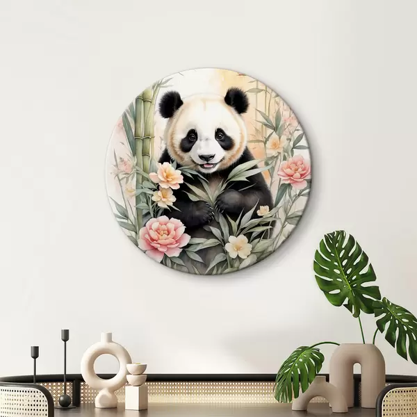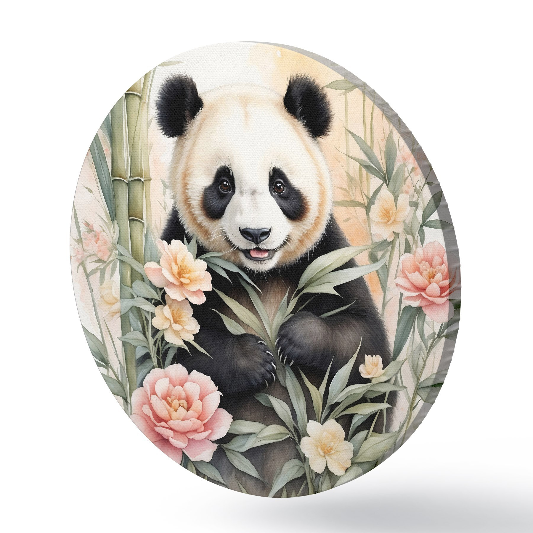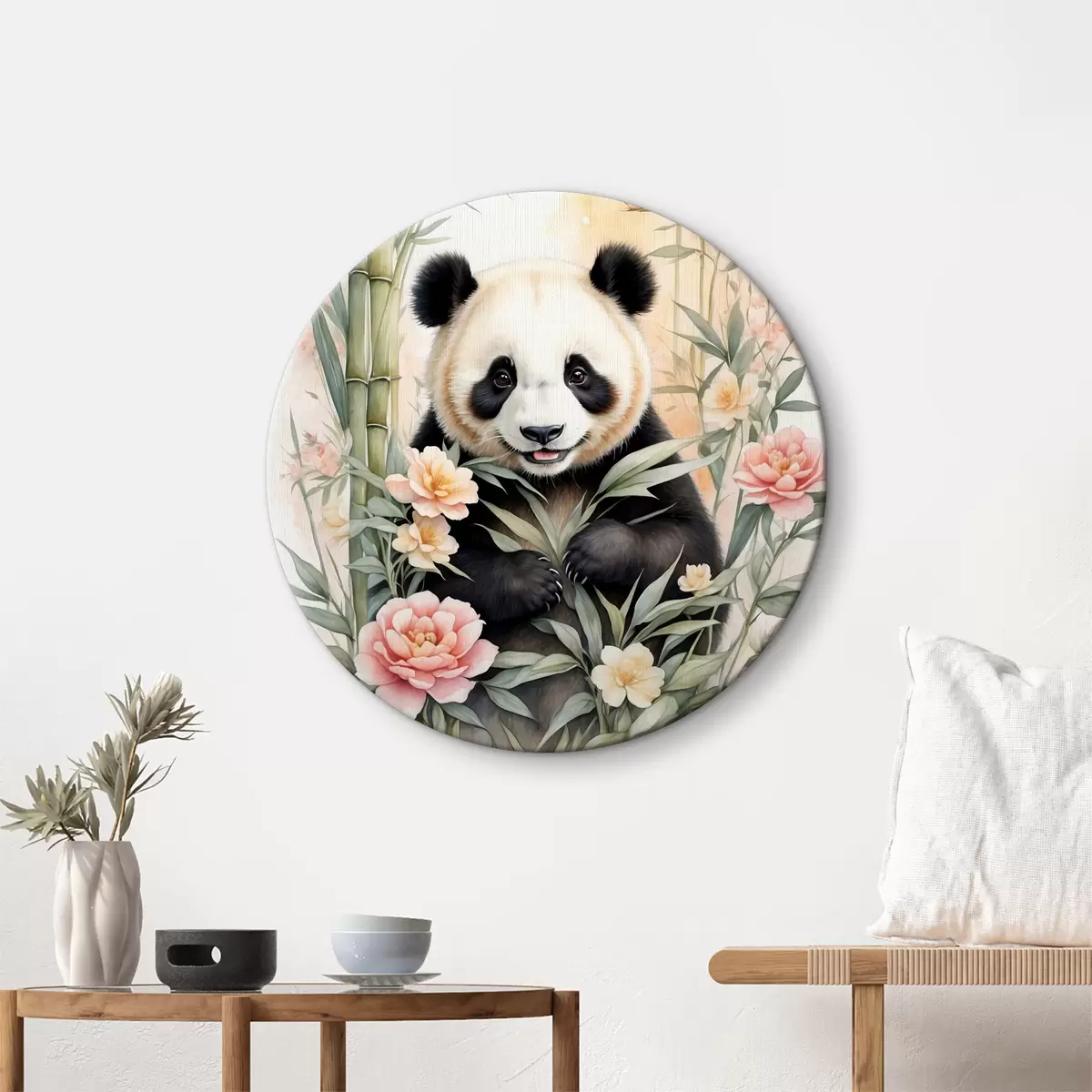 Tableaux ronds Panda avec des fleurs et du bambou r40125