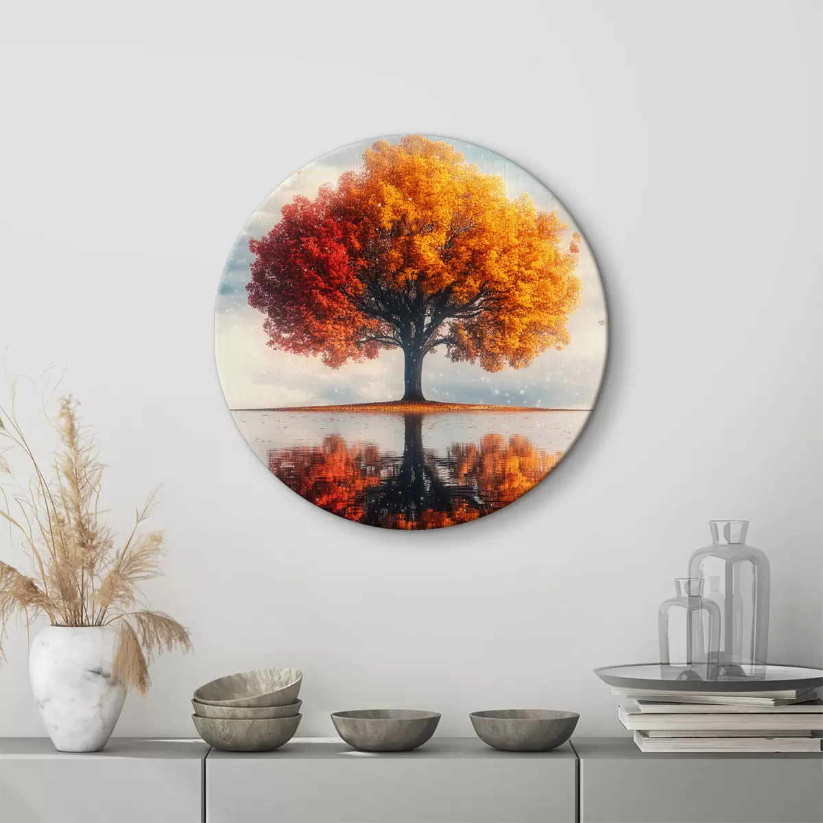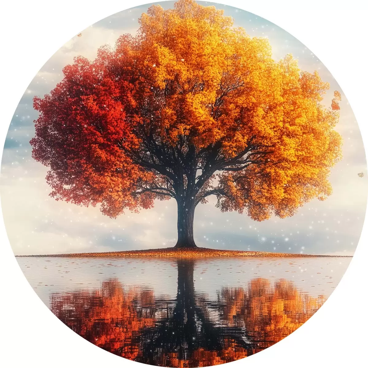 Tableaux ronds Arbre avec reflet dans l'eau r40126