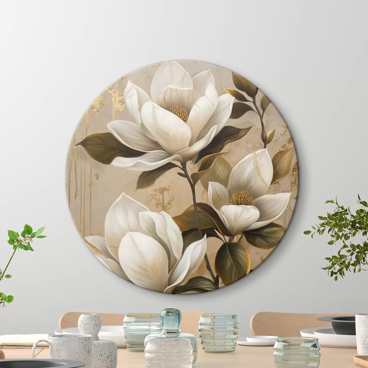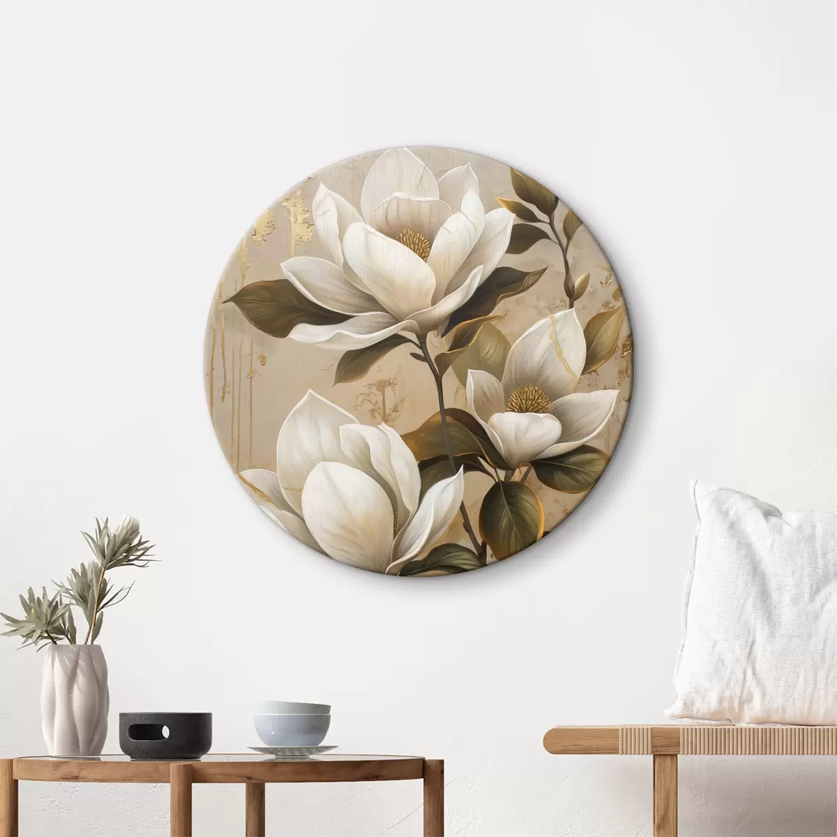 Tableaux ronds grandes fleurs de magnolia r40236