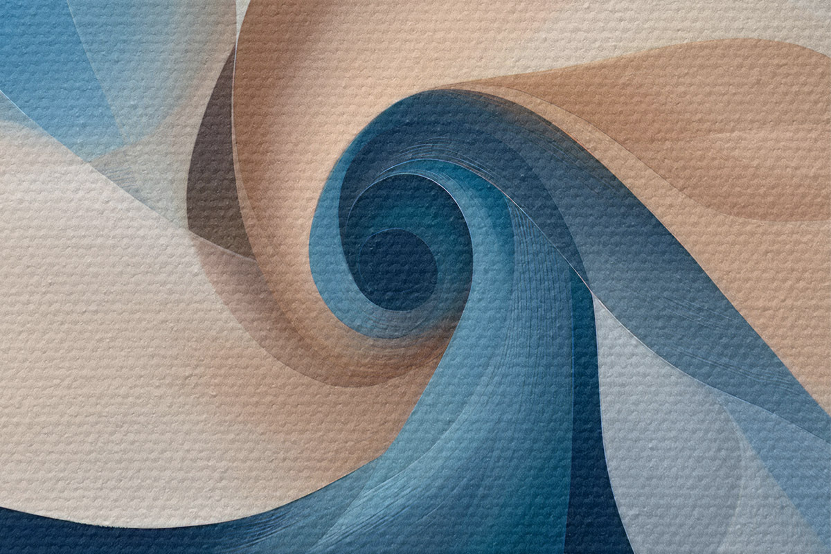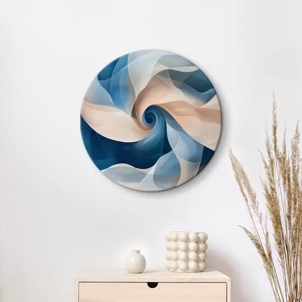 Tableaux ronds vortex abstrait beige-bleu r40249