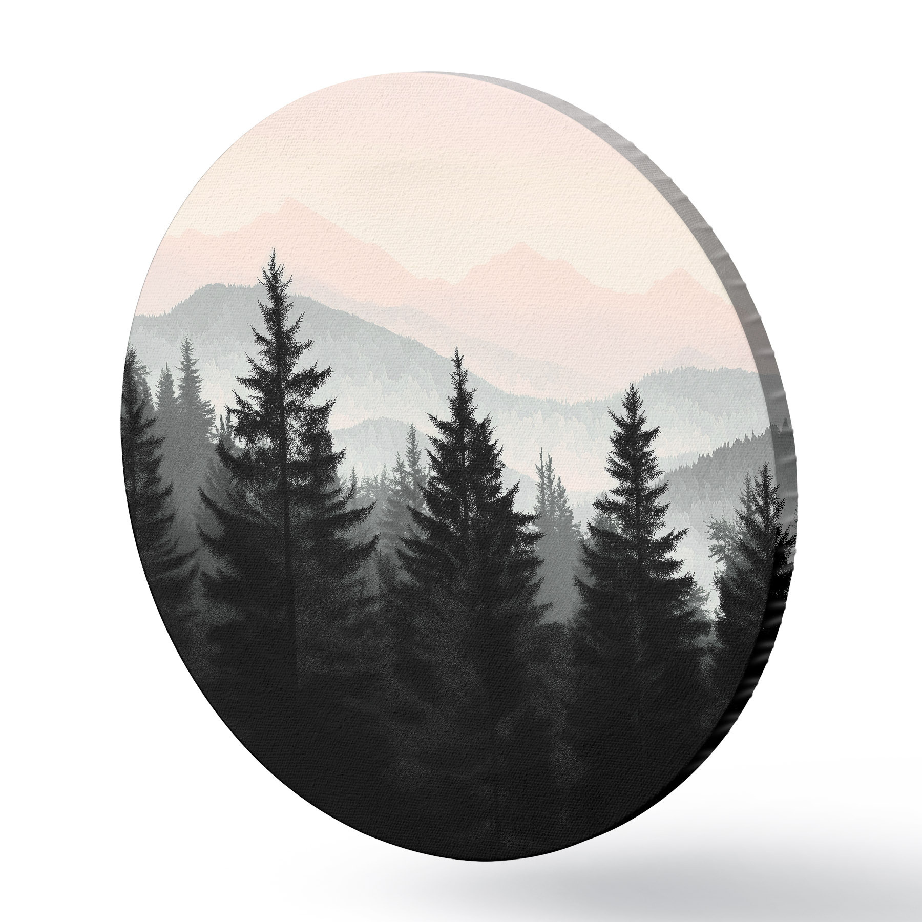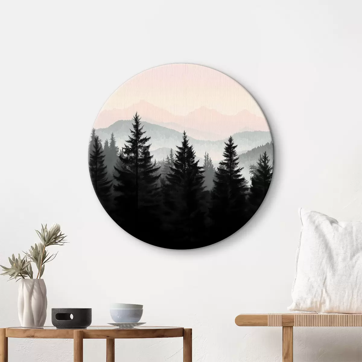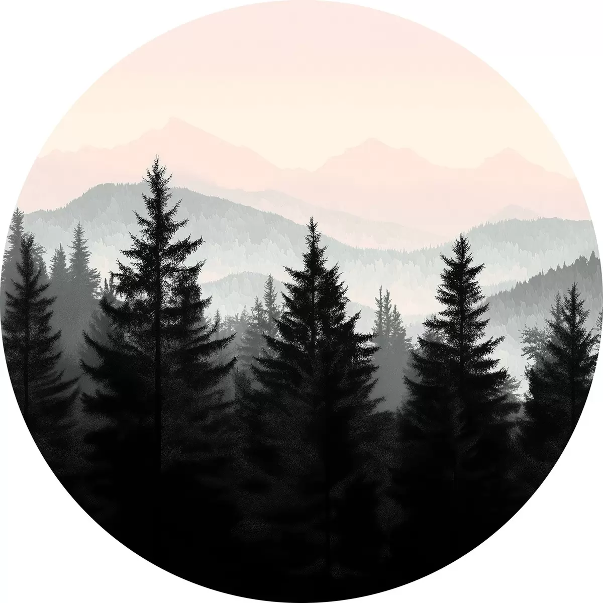Tableaux ronds Forêt avec montagnes en arrière-plan r40281