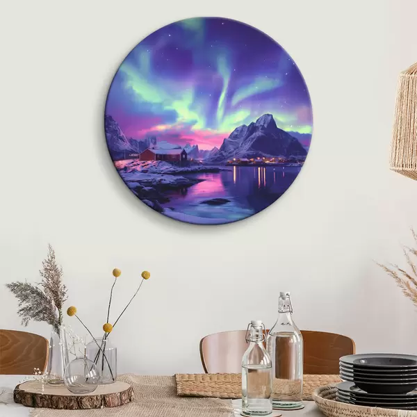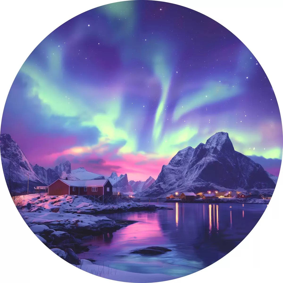 Tableaux ronds Aurore boréale aux Lofoten, Norvège, nature, hiver r40298