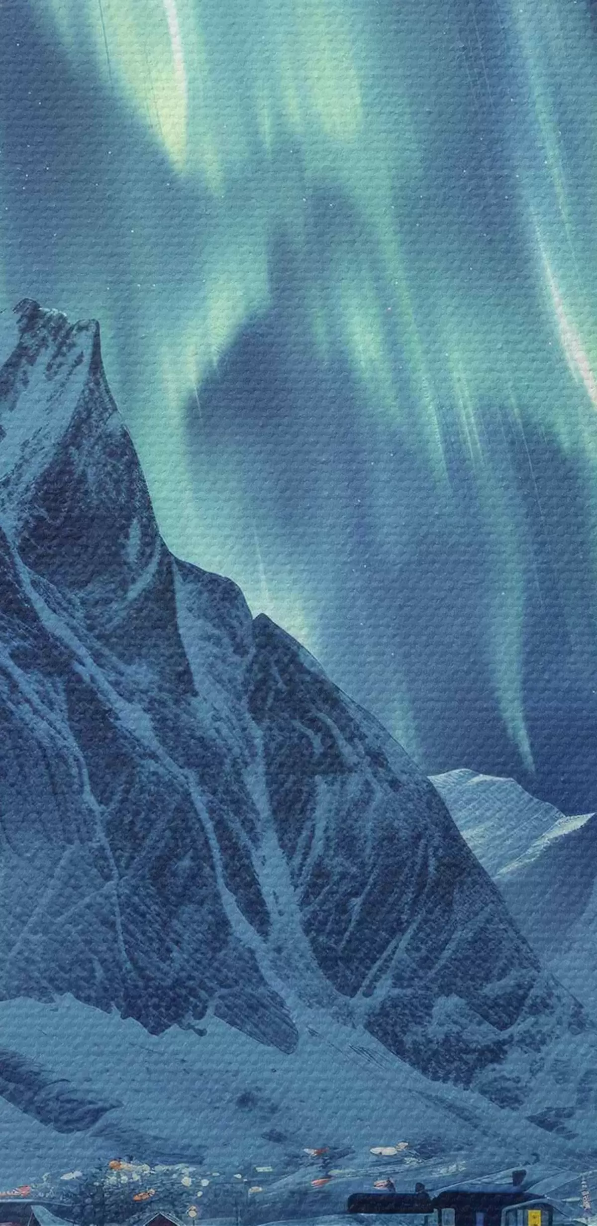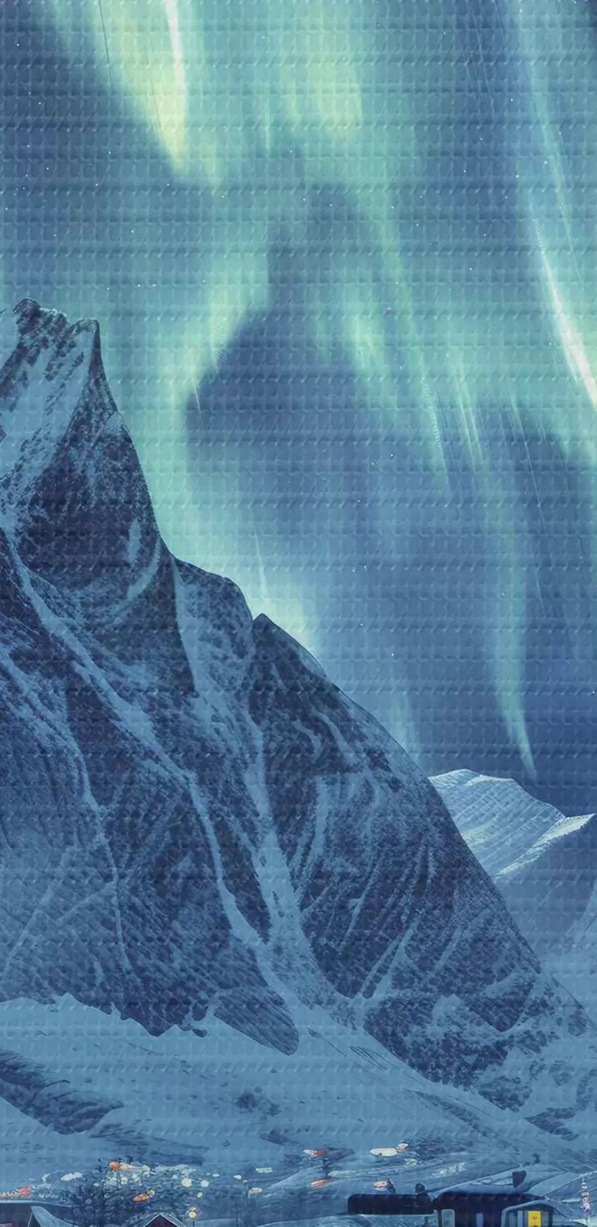 Image Aurore boréale magique, village d'hiver en Norvège Nr r40301