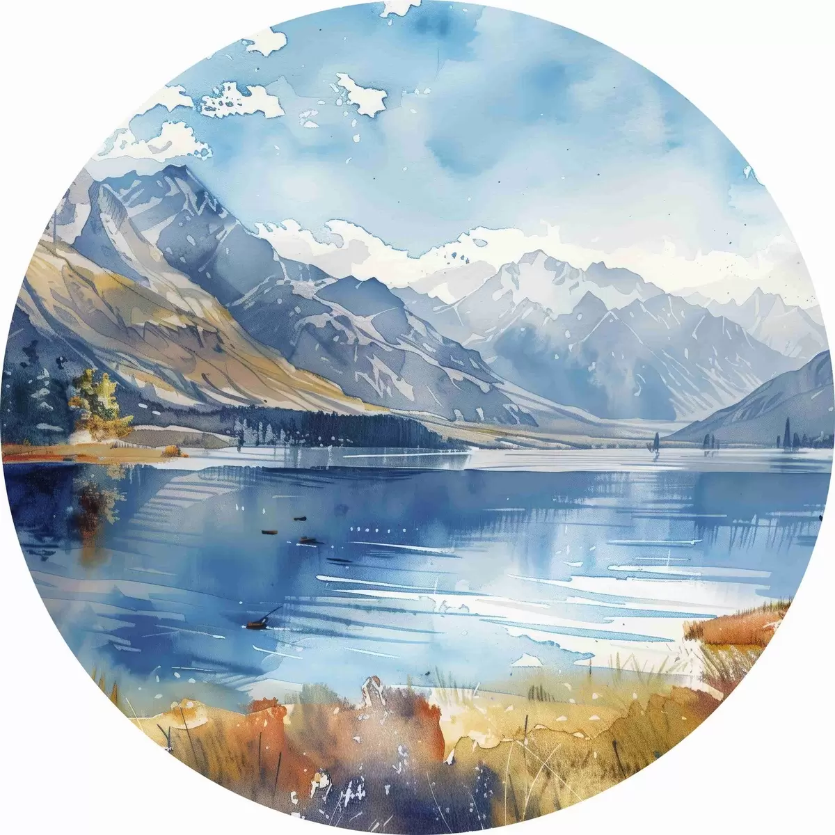 Tableaux ronds Aquarelle paysage de montagne, couleurs d'automne r40308