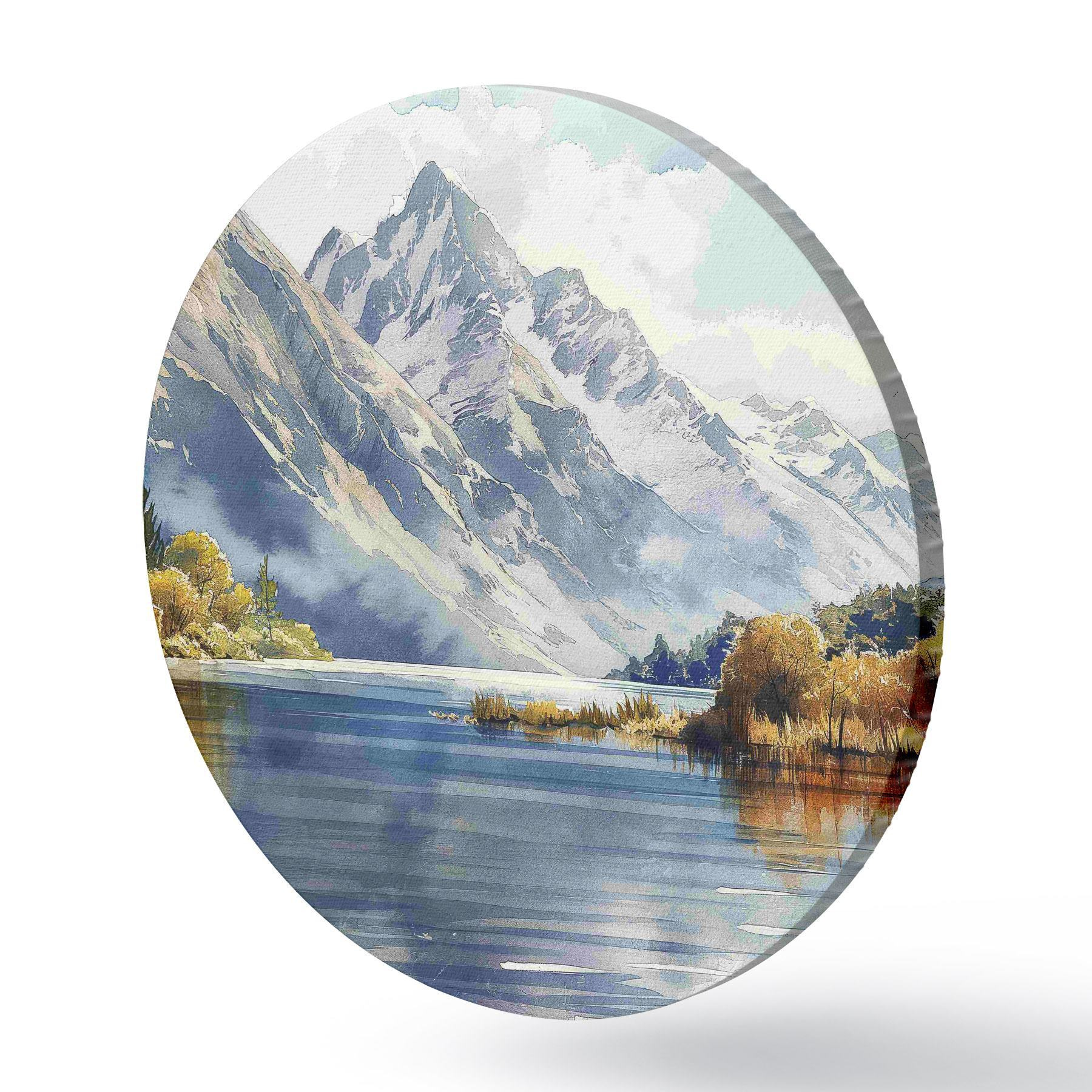Tableaux ronds Paysage d'automne avec montagnes, rivière, arbres r40309