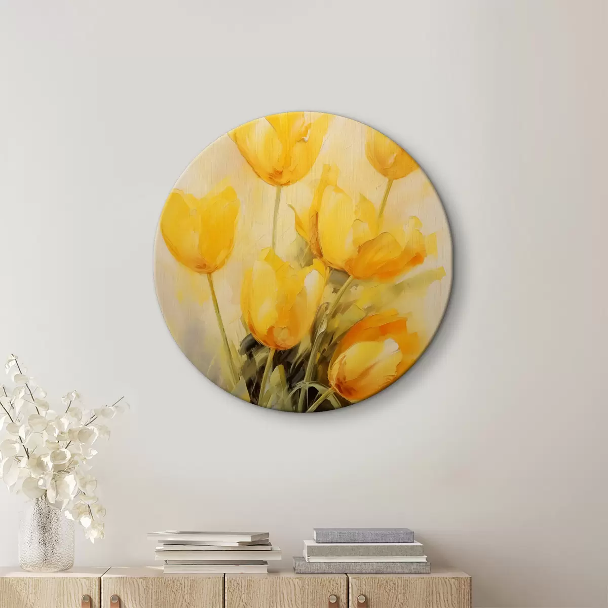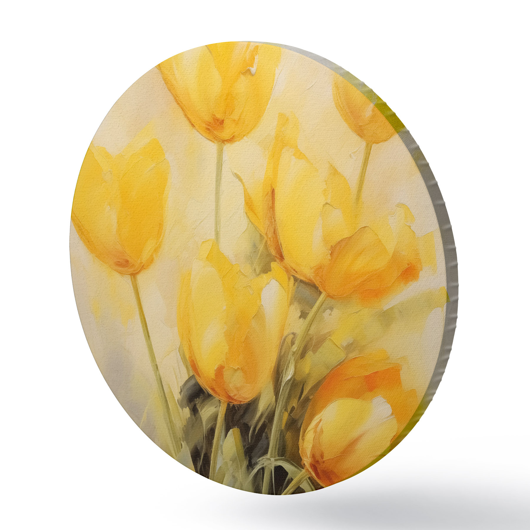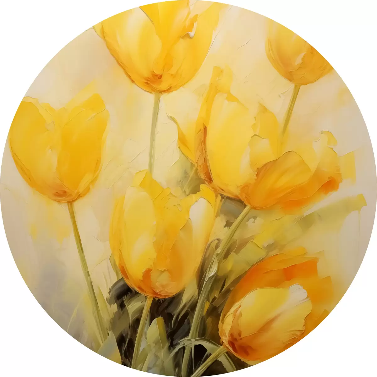 Tableaux ronds Peinture à l'huile imitation tulipes jaunes r40318