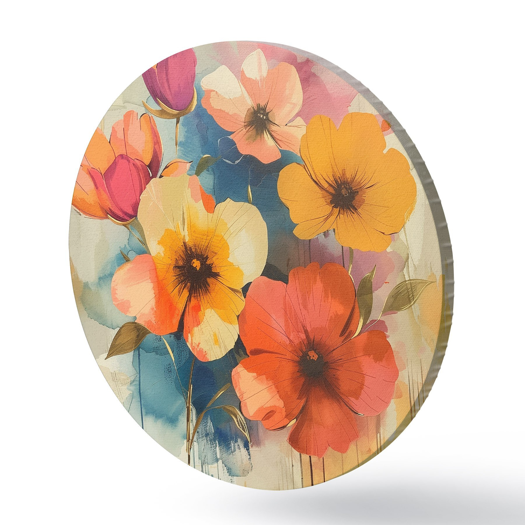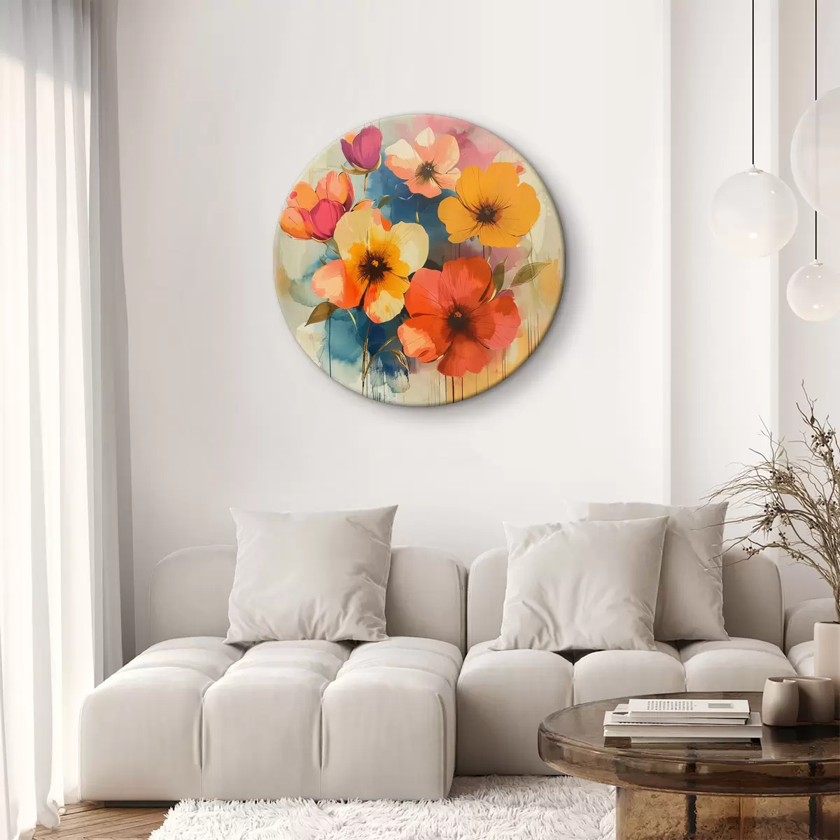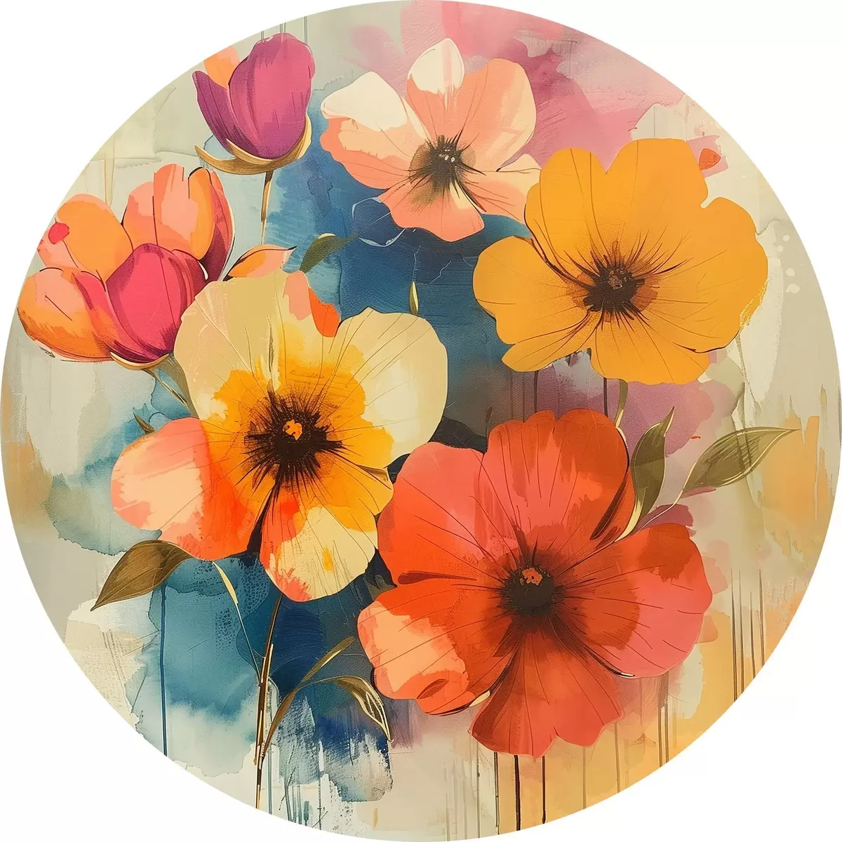 Tableaux ronds Fleurs à l'aquarelle sur un fond abstrait r40371
