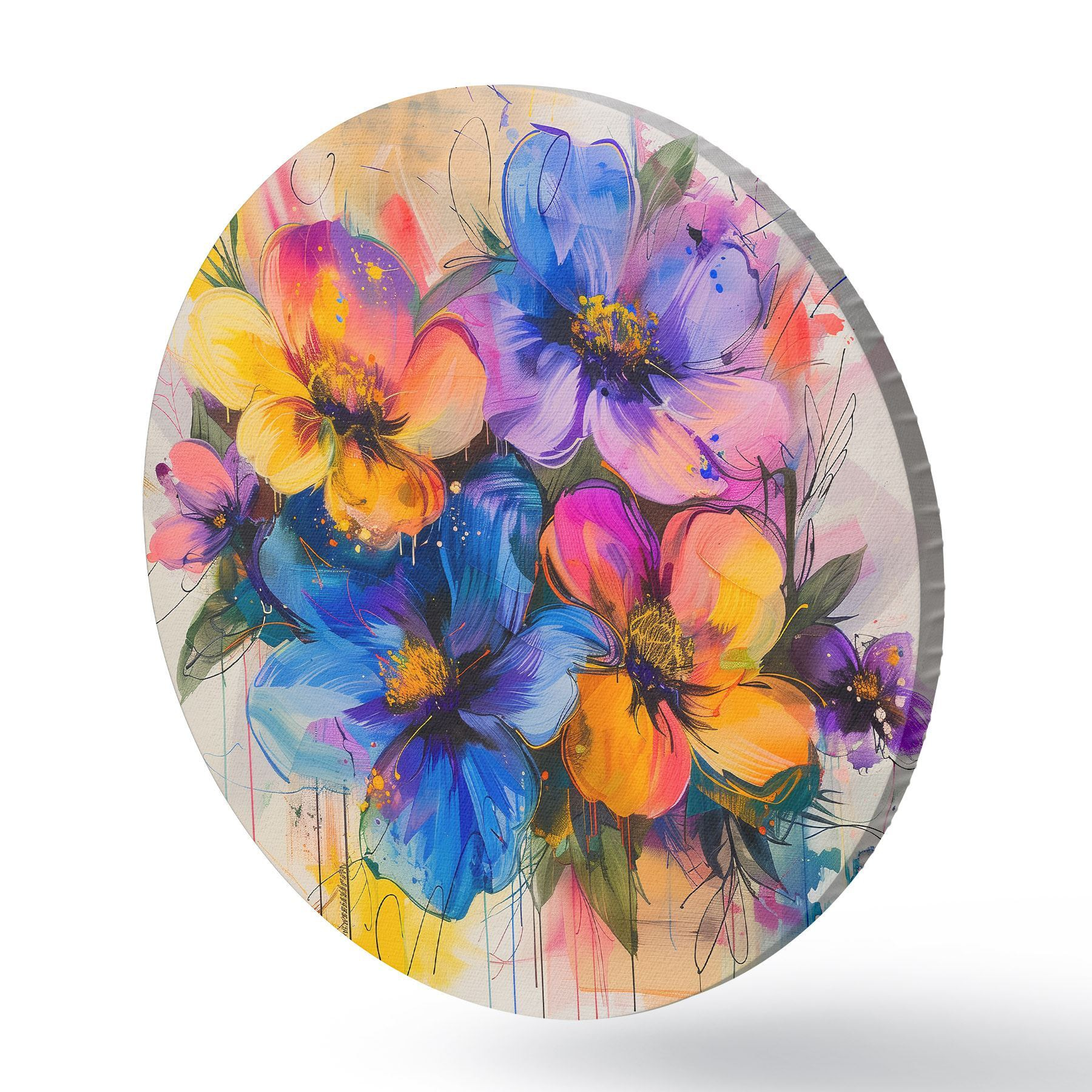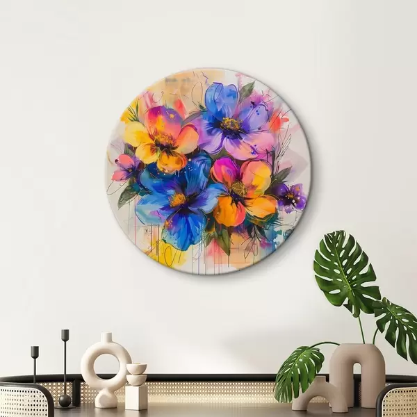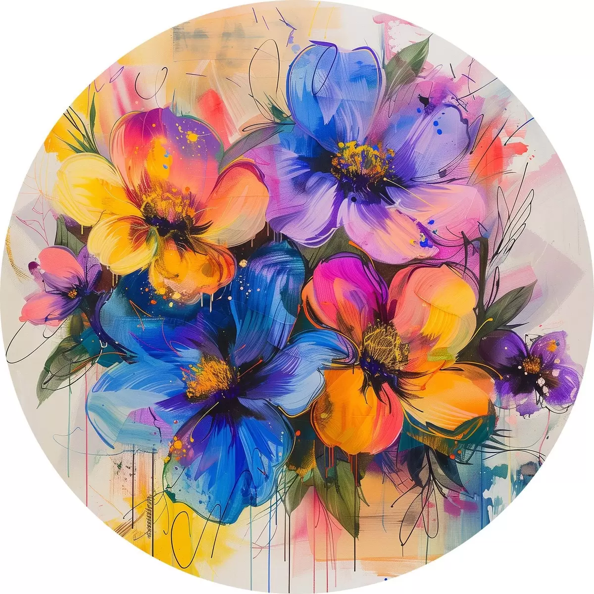 Tableaux ronds Fleurs sur un fond abstrait r40373