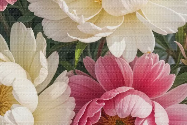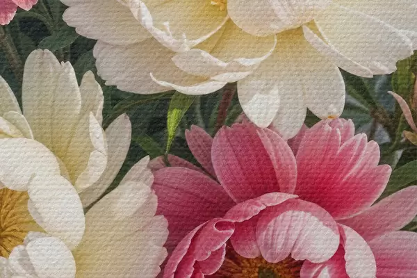 Image Un bouquet de fleurs de pivoine vibrantes dans différentes nuances de rose, de blanc et de jaune avec des touches de peinture Nr r40403