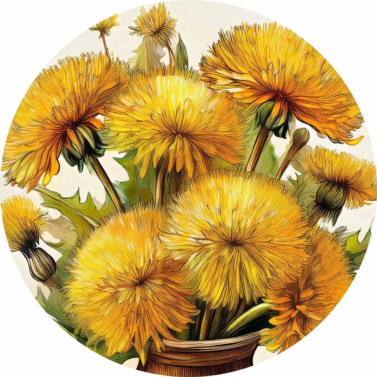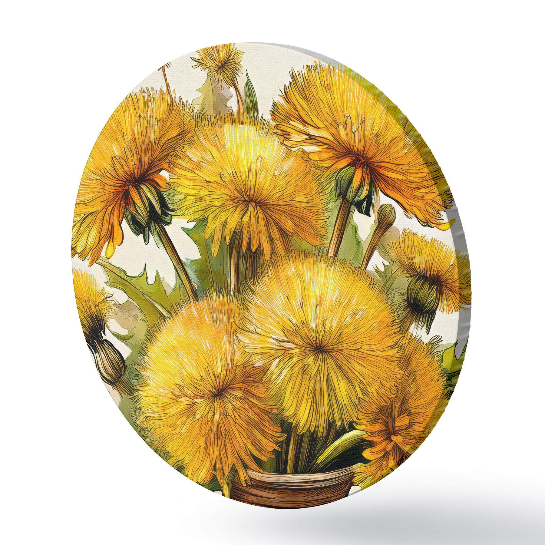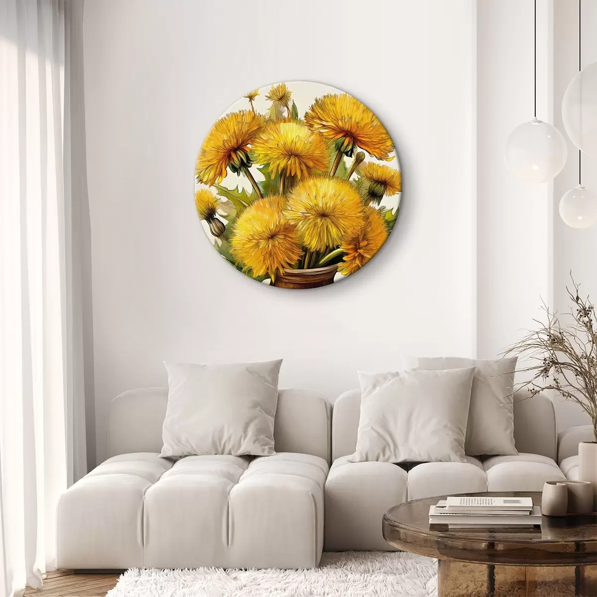 Tableaux ronds pissenlits, bouquet de pissenlits dans un vase, pissenlits jaunes r40418