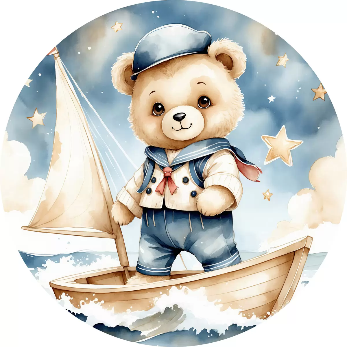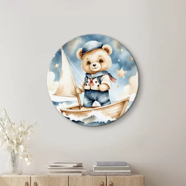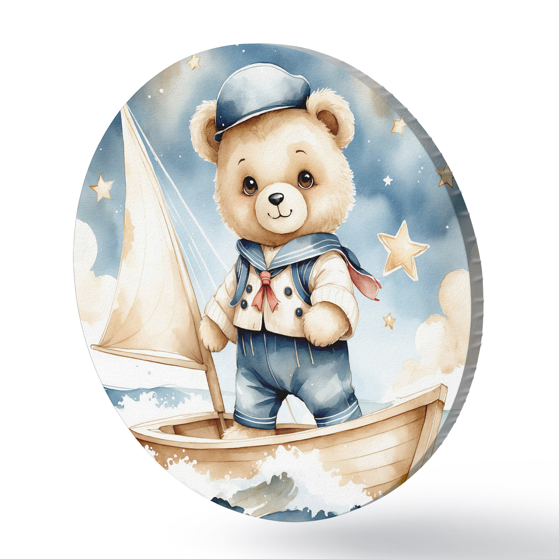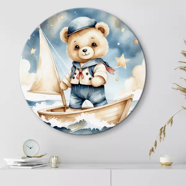 Tableaux ronds Ours aquarelle mignon dans un bateau avec des étoiles dans le ciel r40429