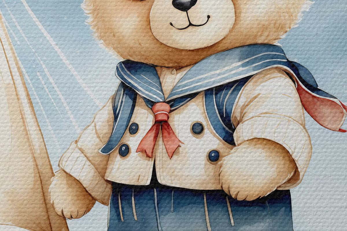 Image Ours aquarelle mignon dans un bateau avec des étoiles dans le ciel Nr r40429