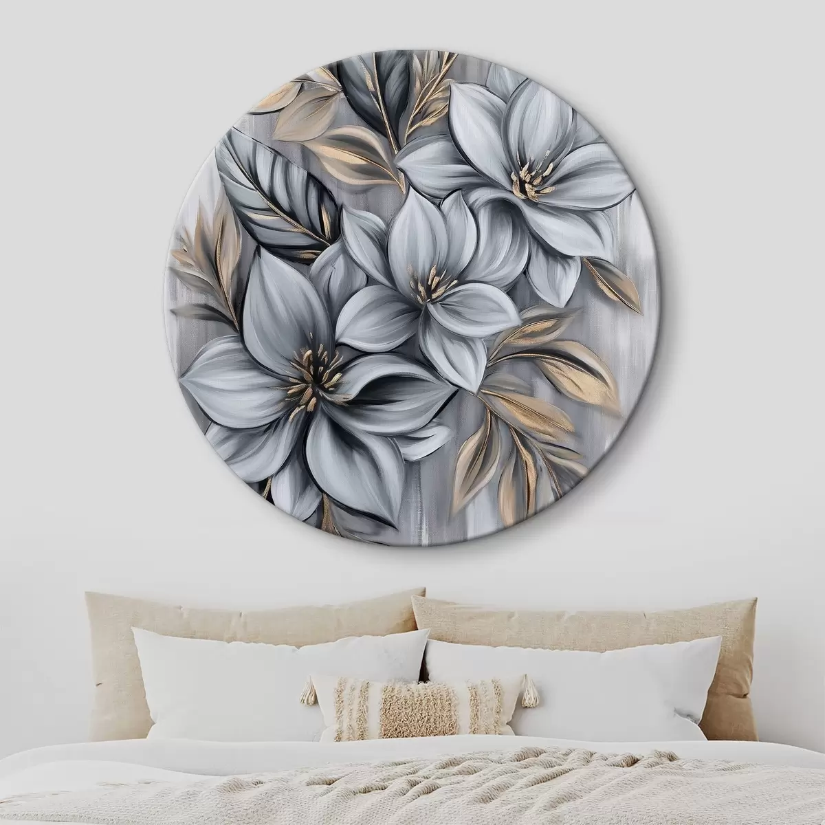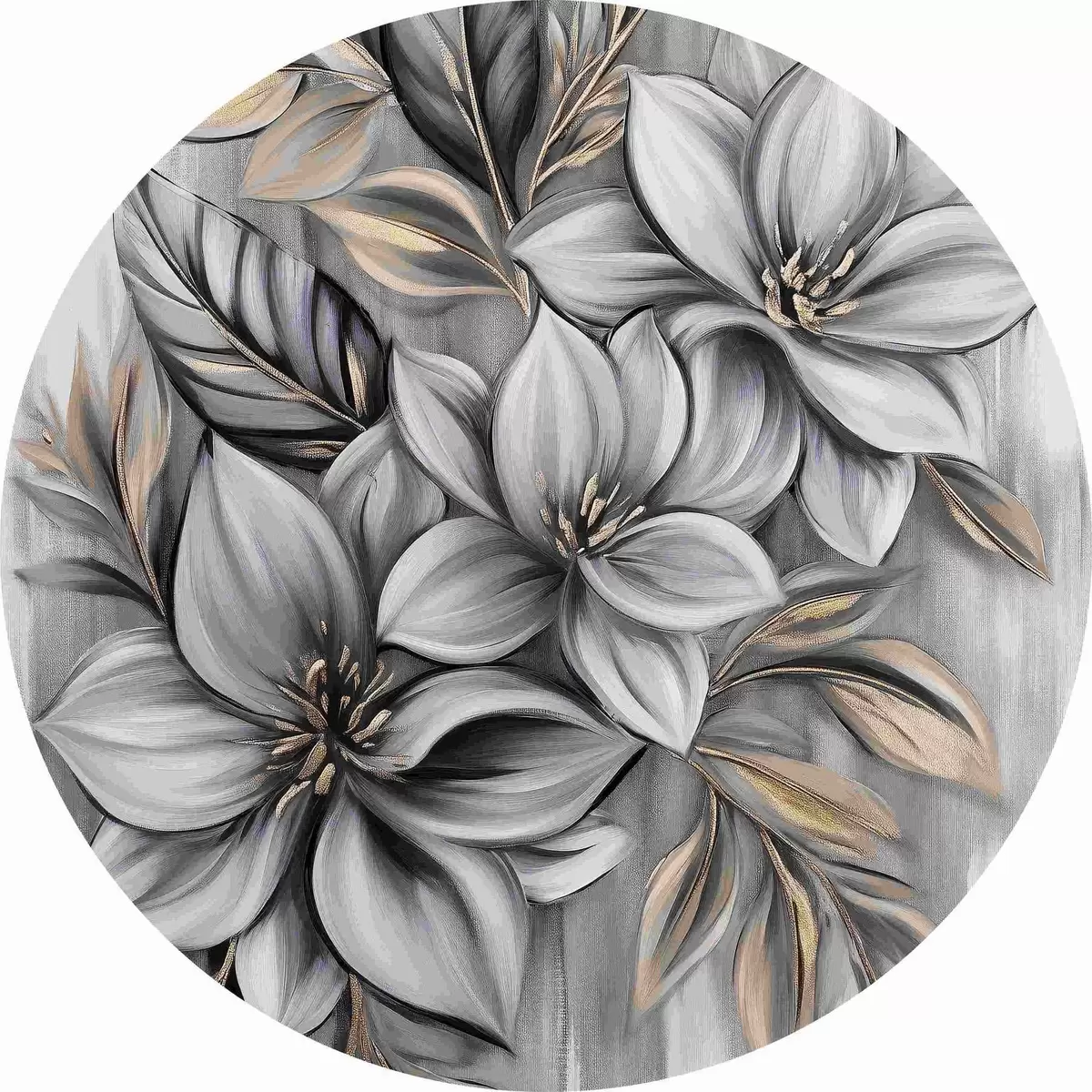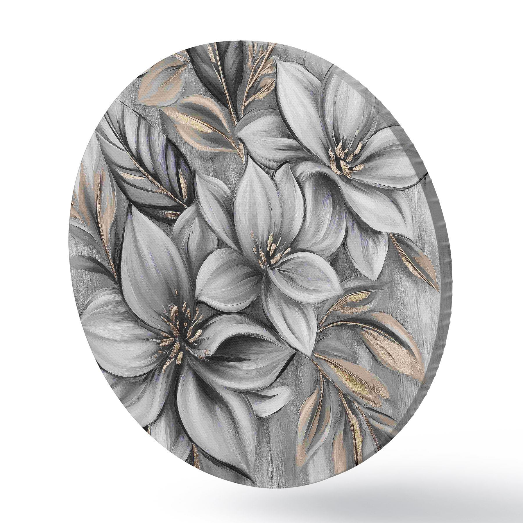 Tableaux ronds Fleurs en nuances de gris r40454