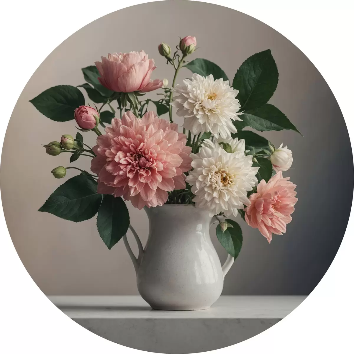 Tableaux ronds Fleurs dans un vase blanc sur la table r40472