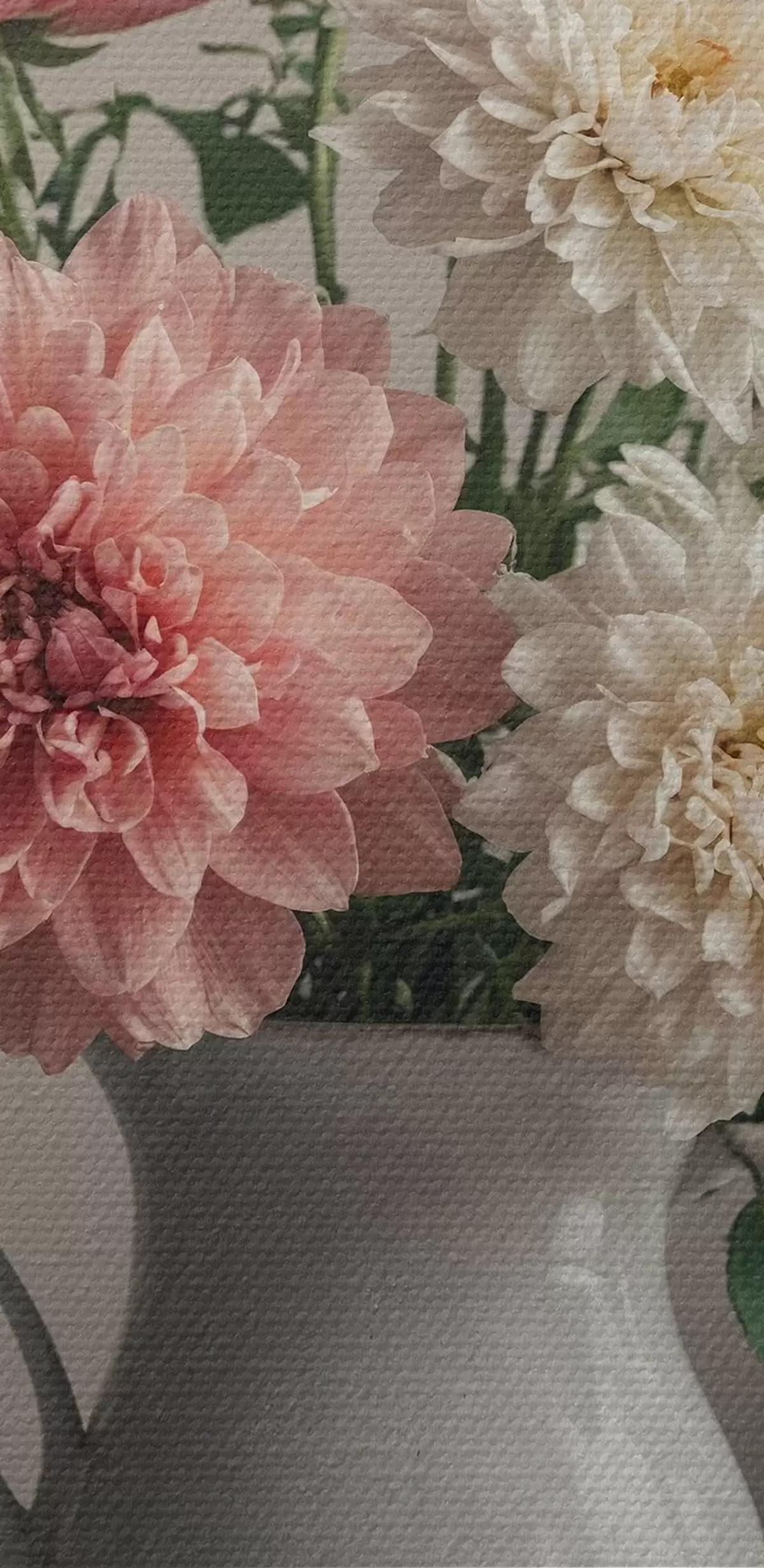 Trois types de matériaux peuvent être commandés : Economic Canvas - matériau dense et durable pour l'impression numérique, identique à la toile de peintre, surface imperméable, reproduction réaliste des détails, matériau à grain moyen. Premium Canvas - la texture ressemble à celle d'une toile de peintre (petits fils entrelacés). Reproduction douce et détaillée de l'image sur une surface mate. Eco-Premium - tissu 100 % coton de haute qualité. Grâce aux fibres naturelles de coton, le matériau est durable et résistant à l'usure. Excellente reproduction des couleurs et des détails.